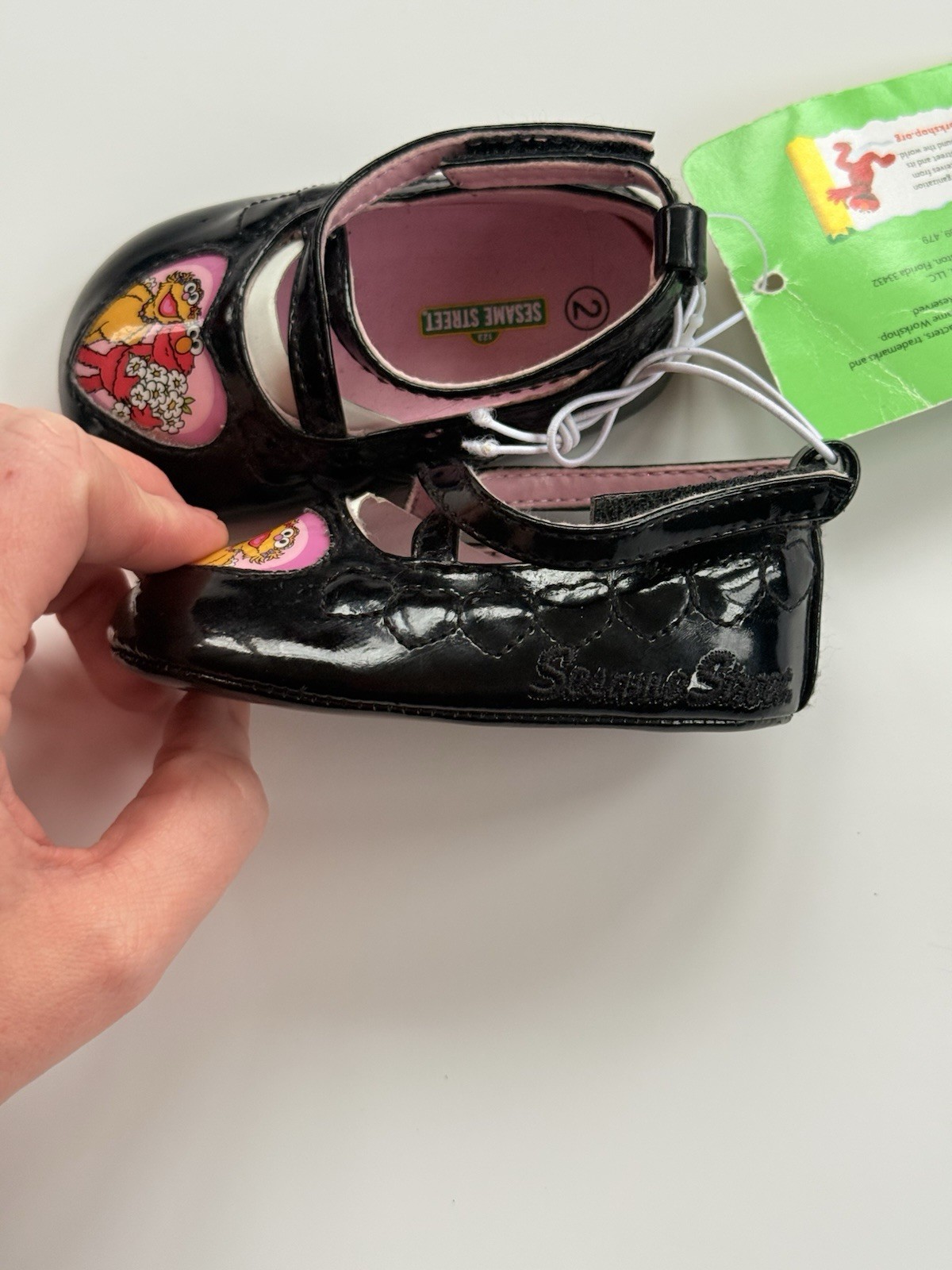 Vintage Y2K Sesame Street 2005 Elmo and Zoe Black Patent Leather Mary Janes NWT
