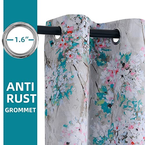 Floral Blackout Curtains 72 inches Long 52W x 72L Pack of 2 A-green Pink