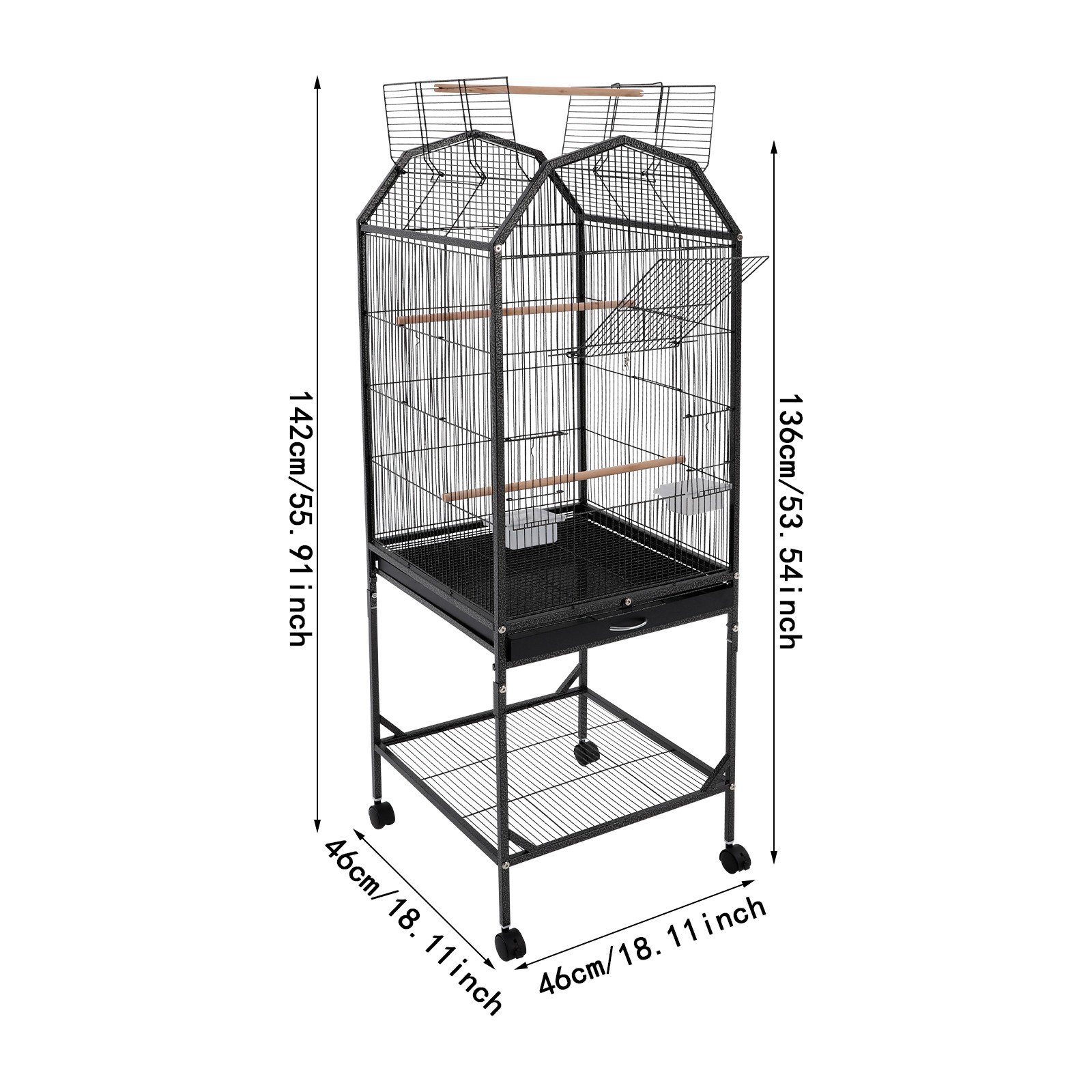 Large Bird Cage w/ Wheels Free Standing Birdcage Cockatiel Parakeet Finch Parrot