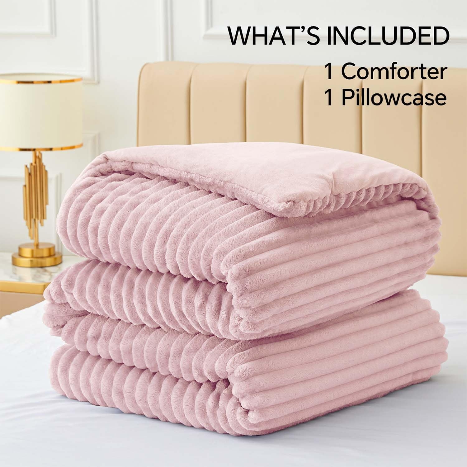 Fleece Twin Comforter Set -Super Soft Warm Fluffy Pink Bedding, Luxury Fuzz...