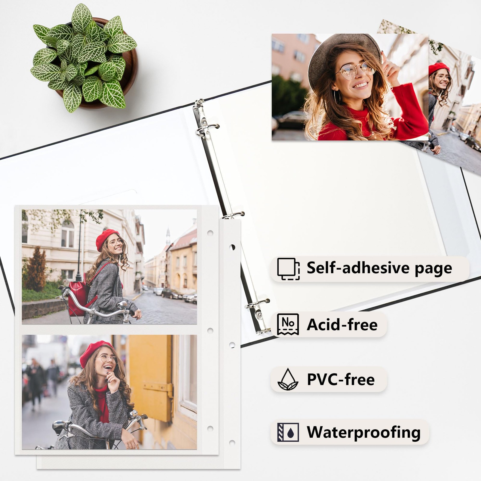 Photo Album Adhesive 3 Ring Binder Photo Albums, Linen Cover Scrapbook Album,...