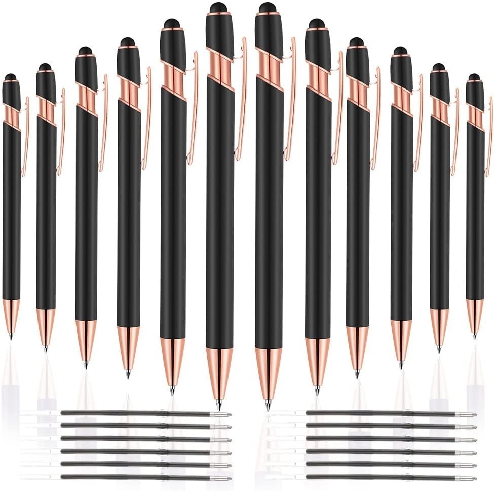 • 12 PCS 2 in 1 Stylus Ballpoint Pen with Stylus Tip, 1.0 mm Black Ink Metal Pen S