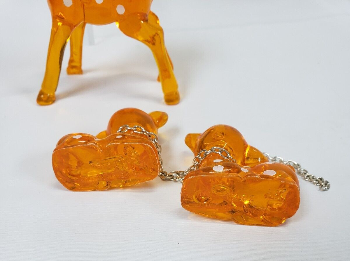 1960s Cute Kitsch Orange Hard Plastic Deer Family Made Hong Kong MCM Vintage