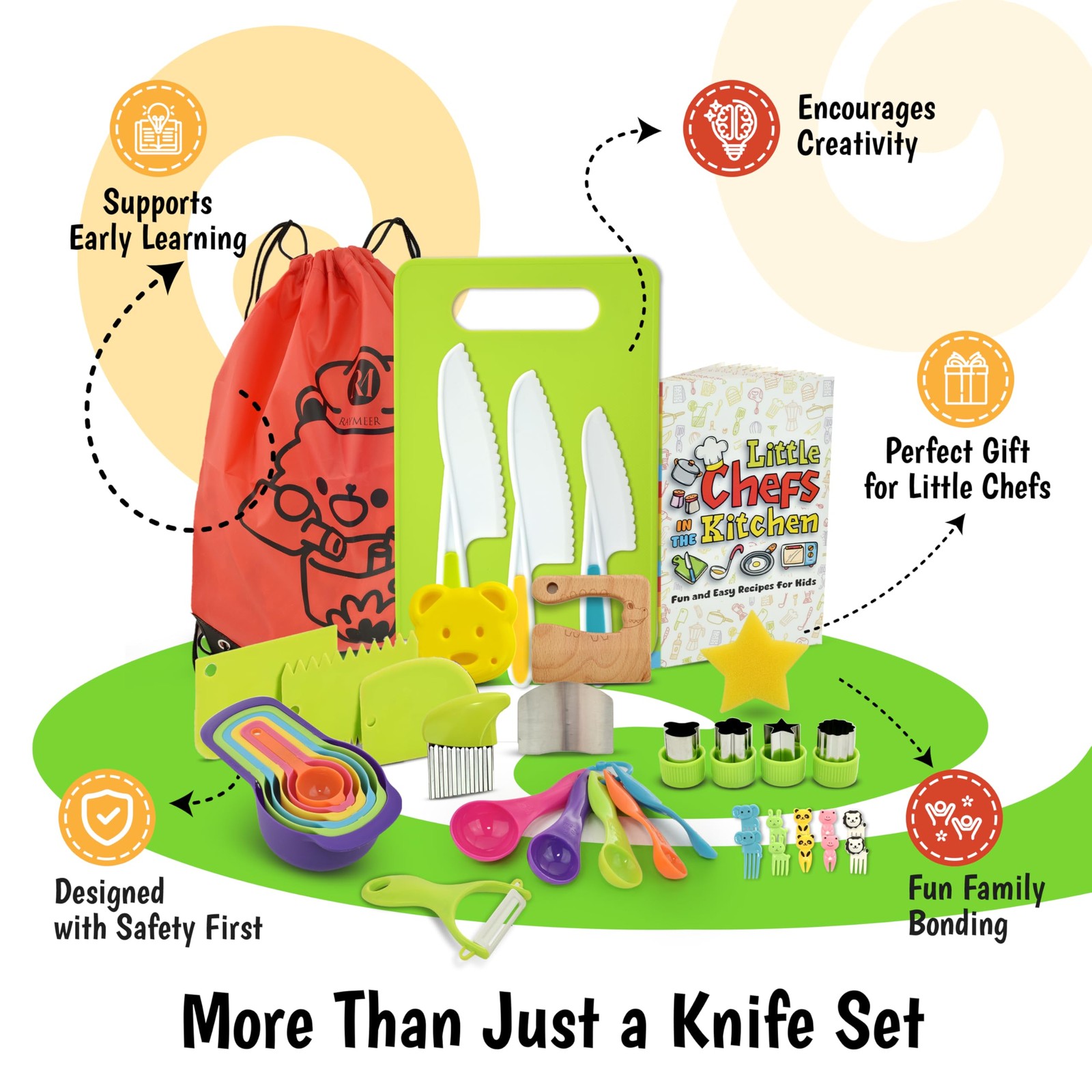 40Pcs Kids Knife set for Real Cooking - Montessori Kitchen Tools for Toddlers...