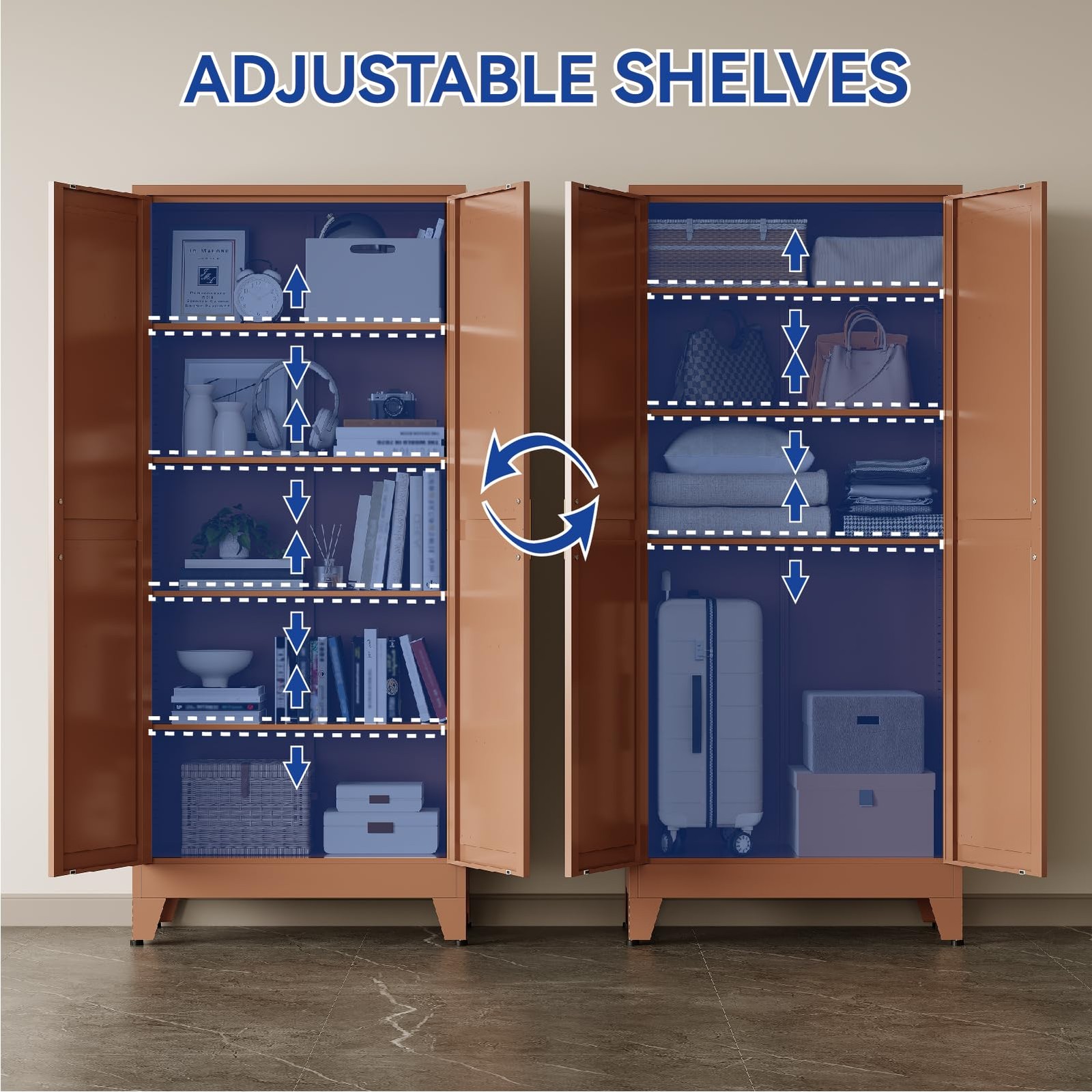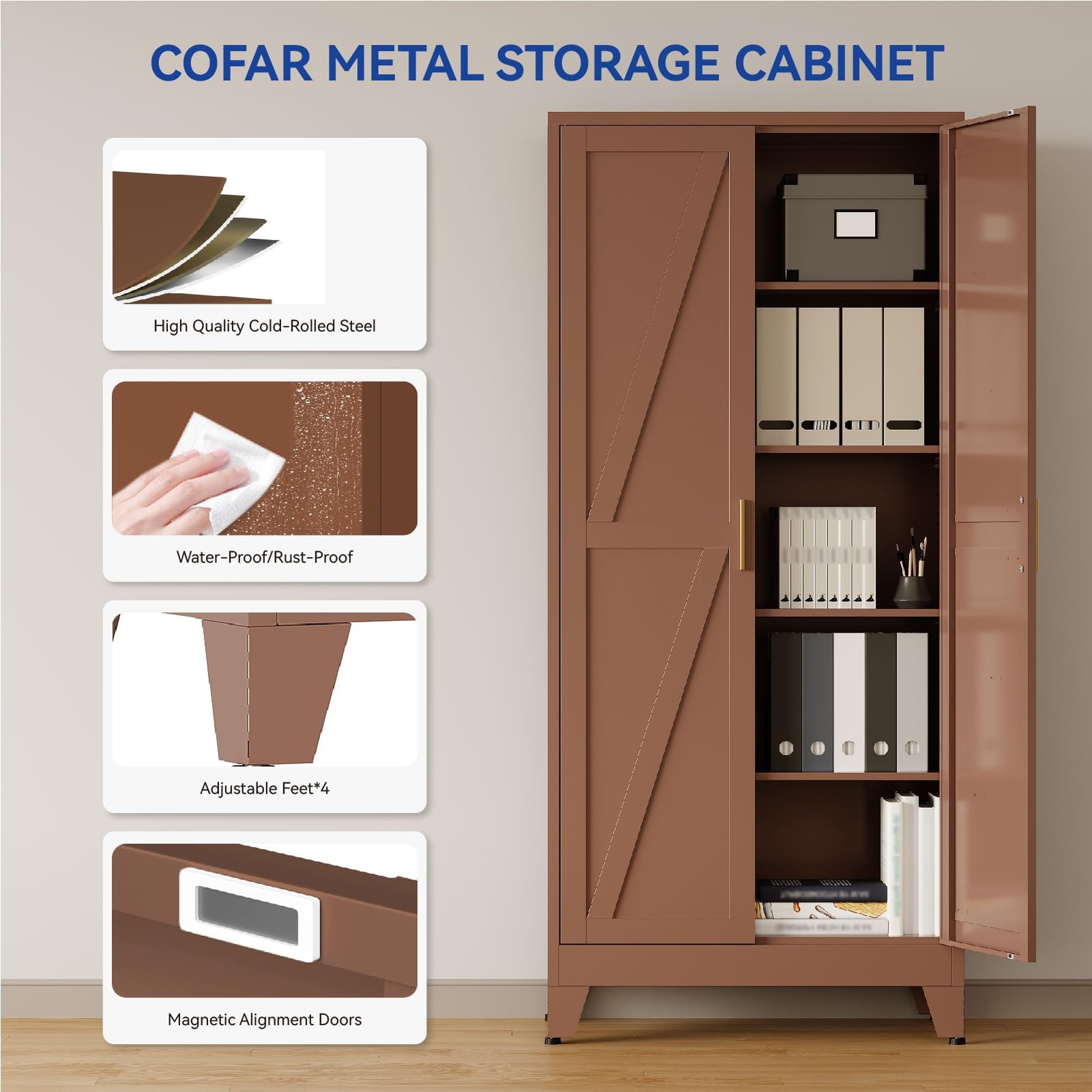 71 in Tall Metal Storage Cabinet Metal Cabinet with 4 Adjustable Shelves