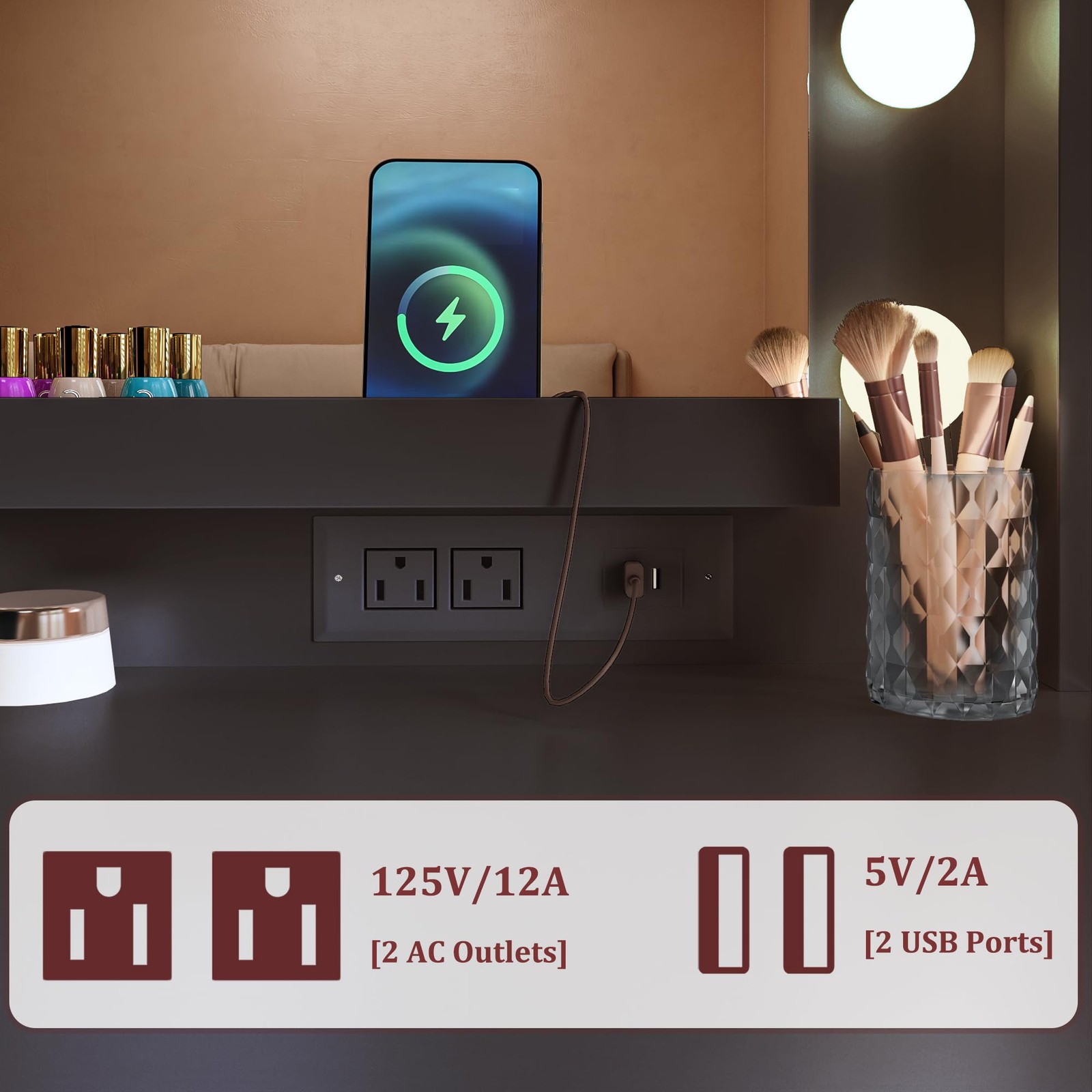 как выглядит Makeup Vanity Desk with Mirror and Lights, 39.3in Vanity Desk with LED Lights фото