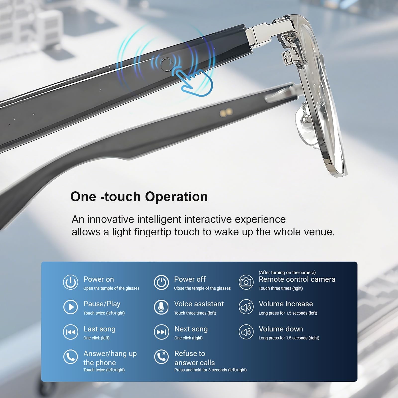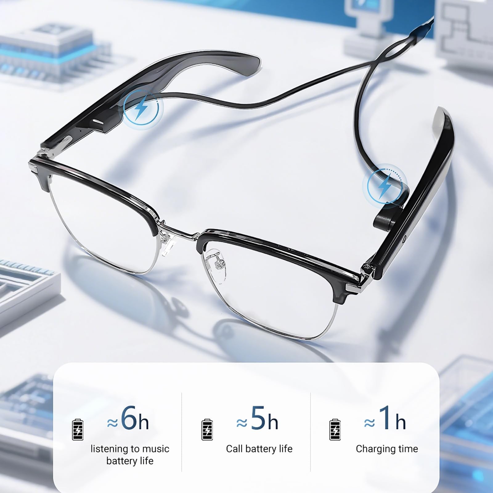Bluetooth Blue Light Glasses for Women Men, AI Voice Assistant, Open Ear Spea...