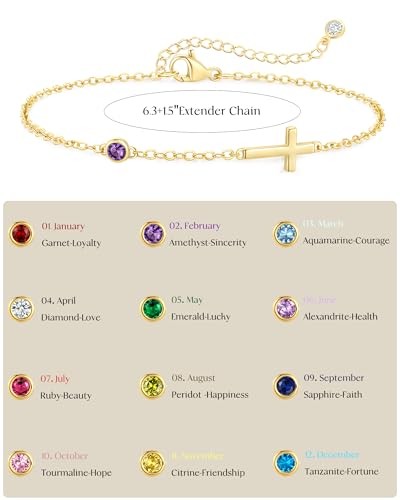 Birthstone Gold Bracelets for Women Non Tarnish Trendy 02. February Amethyst