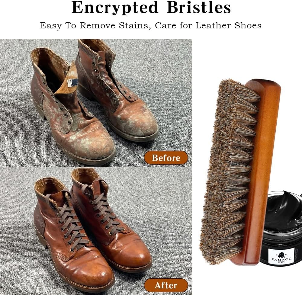 Shoe Brush, Horsehair Shoe Brush Shoe Cleaning Brush Boot Brush for Leather, Sho