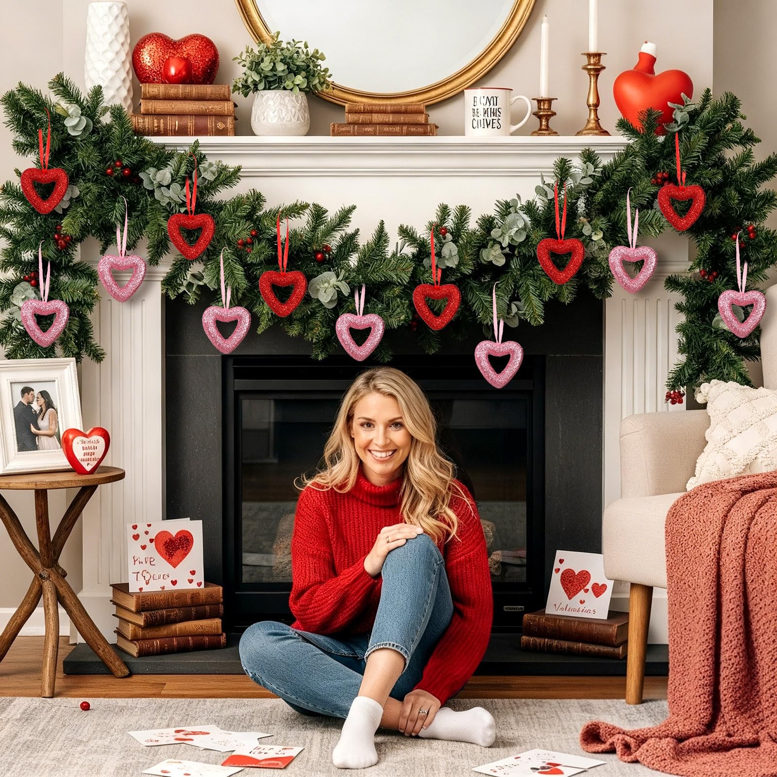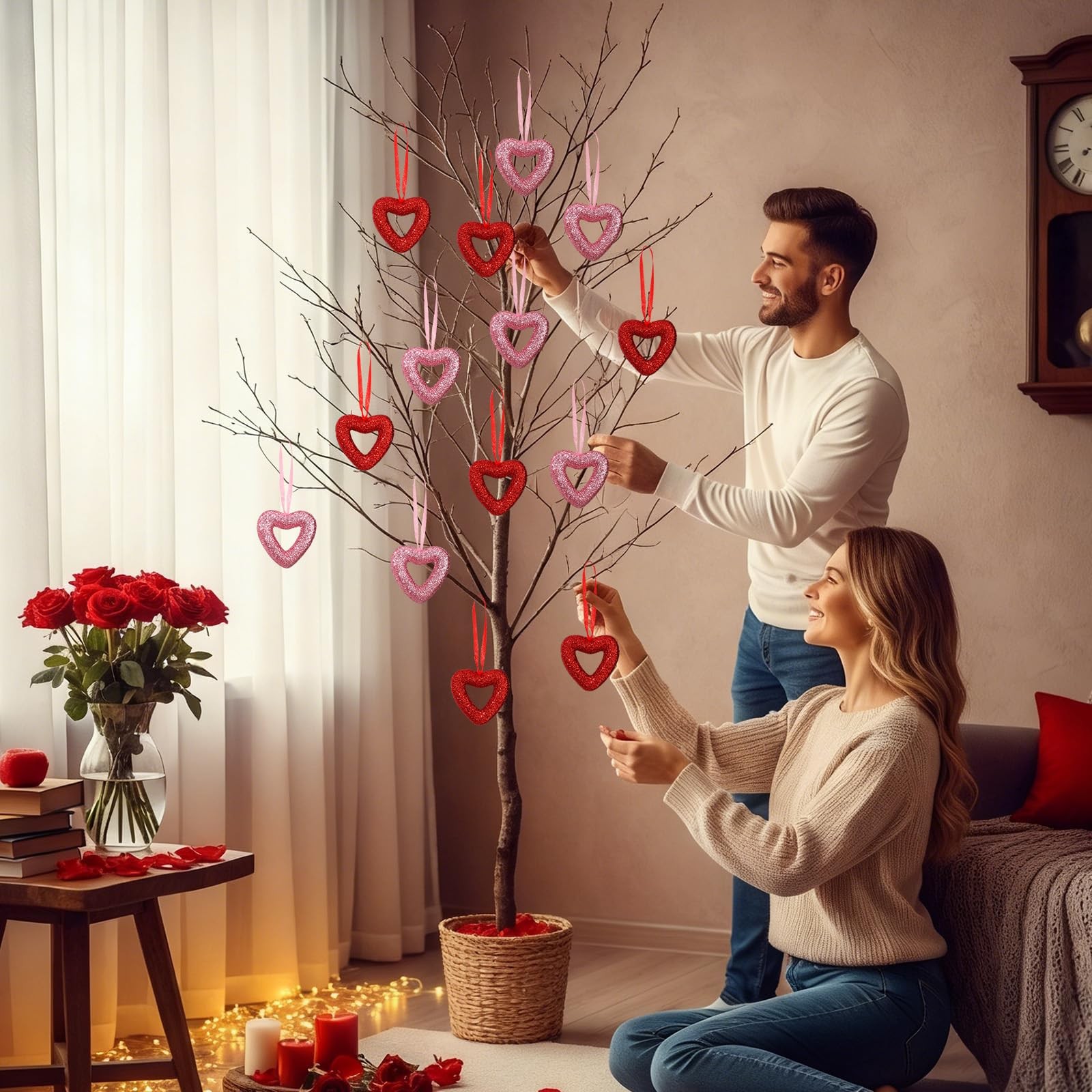 24 Pcs Valentines Heart Ornaments Heart Shaped Decorations Red Pink Glitter Roma