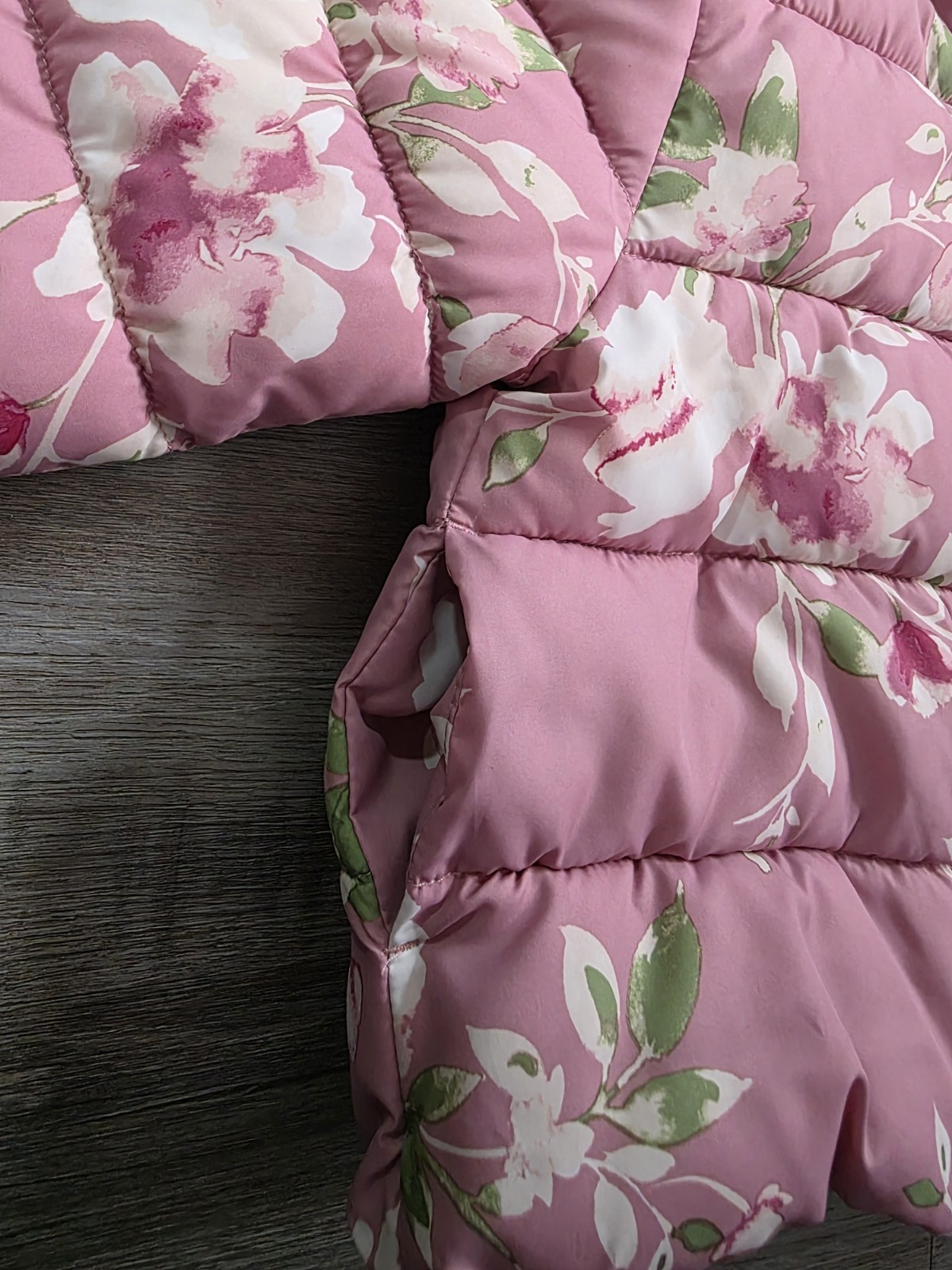 The Children's Place Baby Pink Floral Puffer Jacket with Hoodie 18-24 M