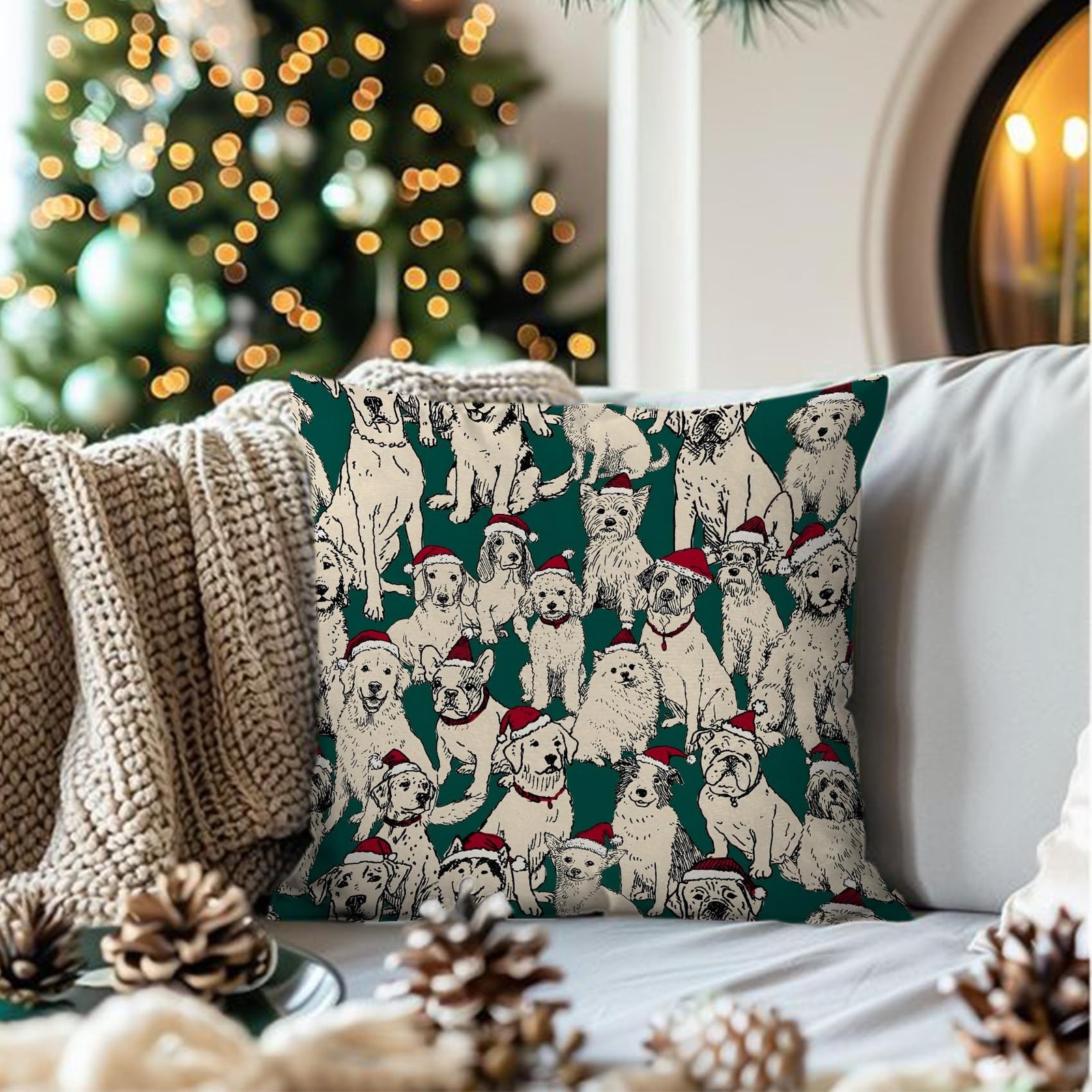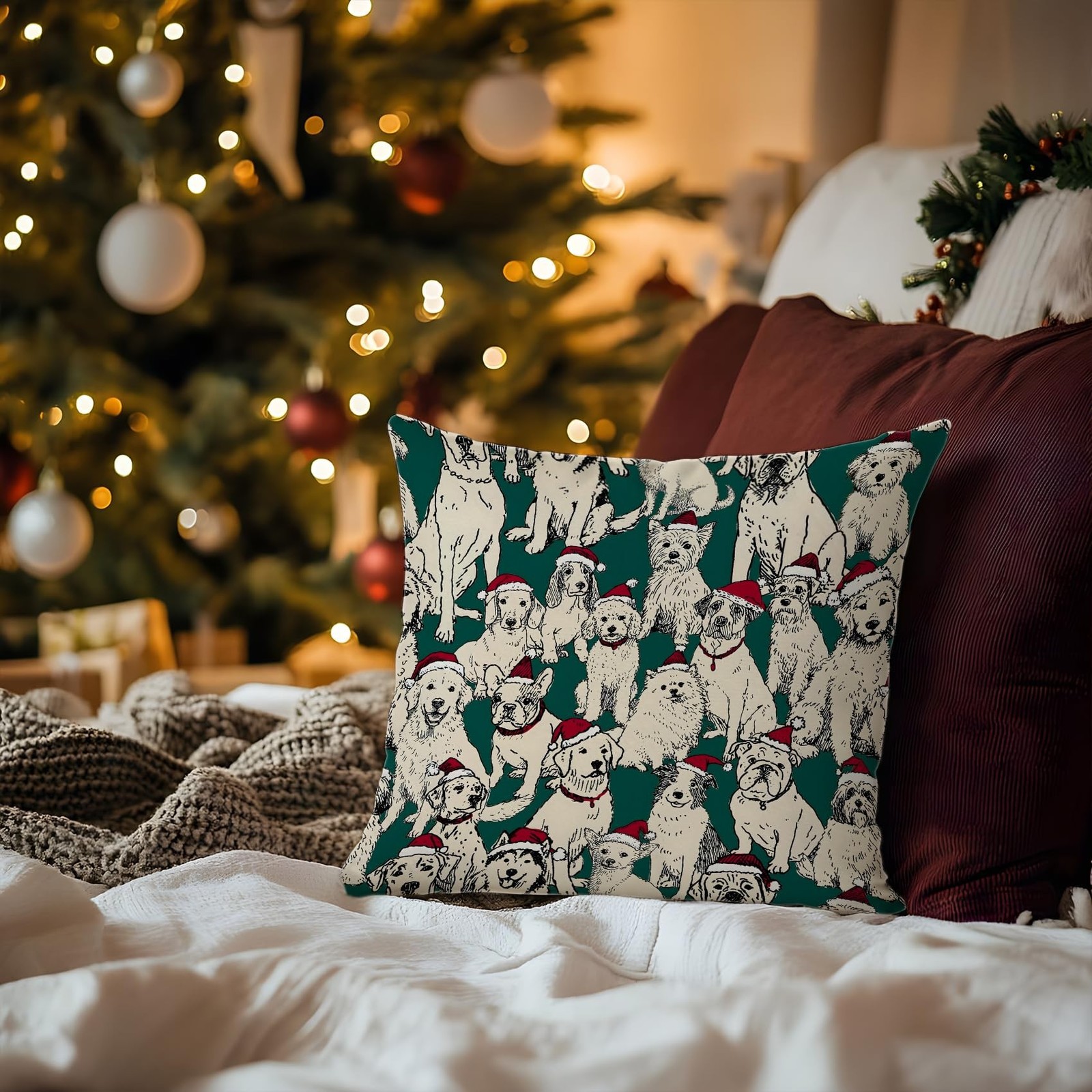 Dog Christmas Throw Pillow Covers 18x18, Dog Christmas Decor, Dark Green Xmas...