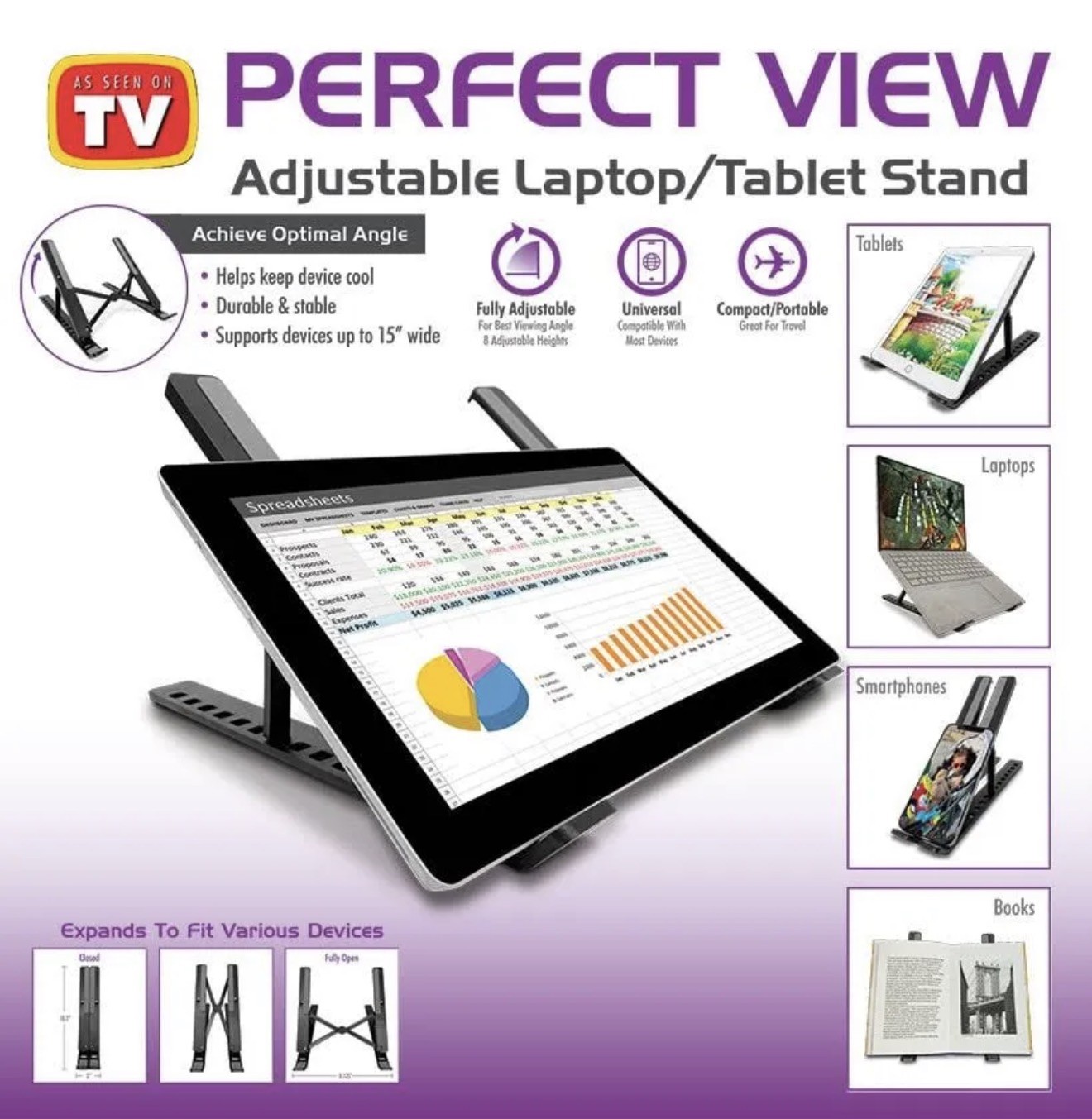 NEW Perfect View Adjustable Laptop and Tablet Stand - Folds Expands for travel