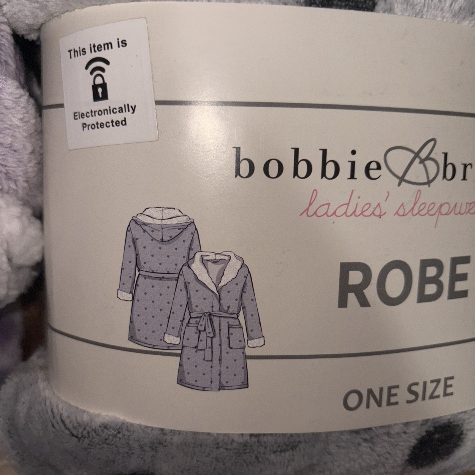 NWT WOMANS Cozy Hooded 2 Pocket Knee Length One Size Bath Robe Purple Or Gray