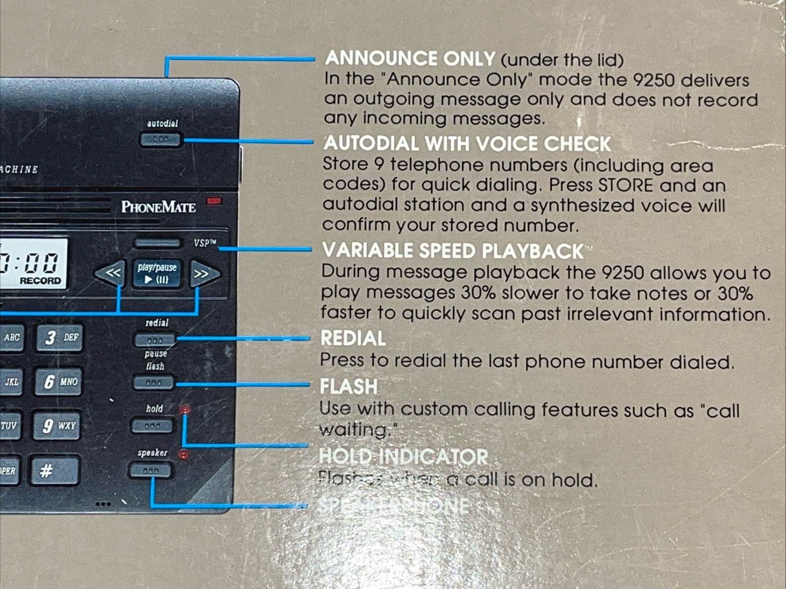 как выглядит PhoneMate 9250 Digital Answering Machine With Speaker Phone 1993 Open Box фото