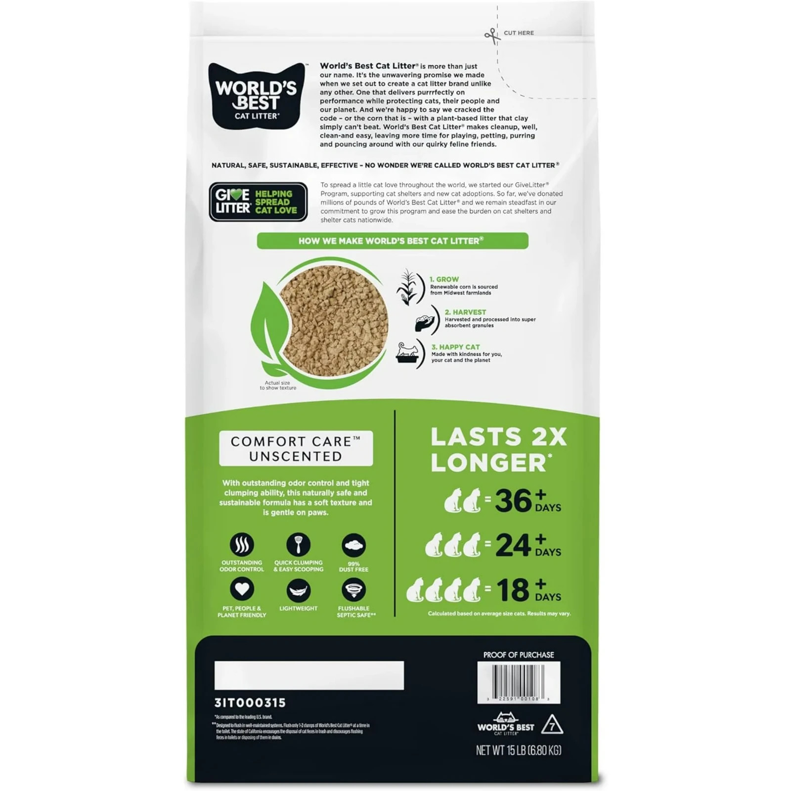 2 pack World's Best Cat Litter Ingredients Unscented, 99 Dust Free, 15 lb/Bag