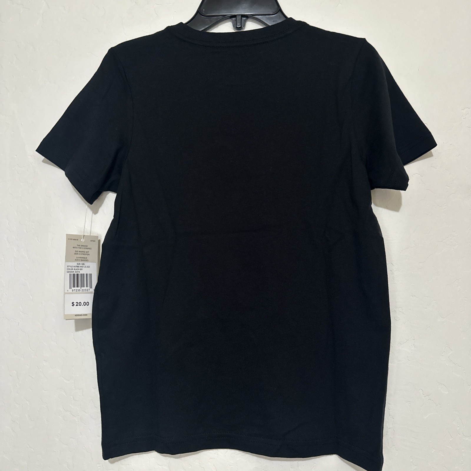 как выглядит Adidas Boys Black 3 Stripes Life T-Shirt Size Small NWT фото