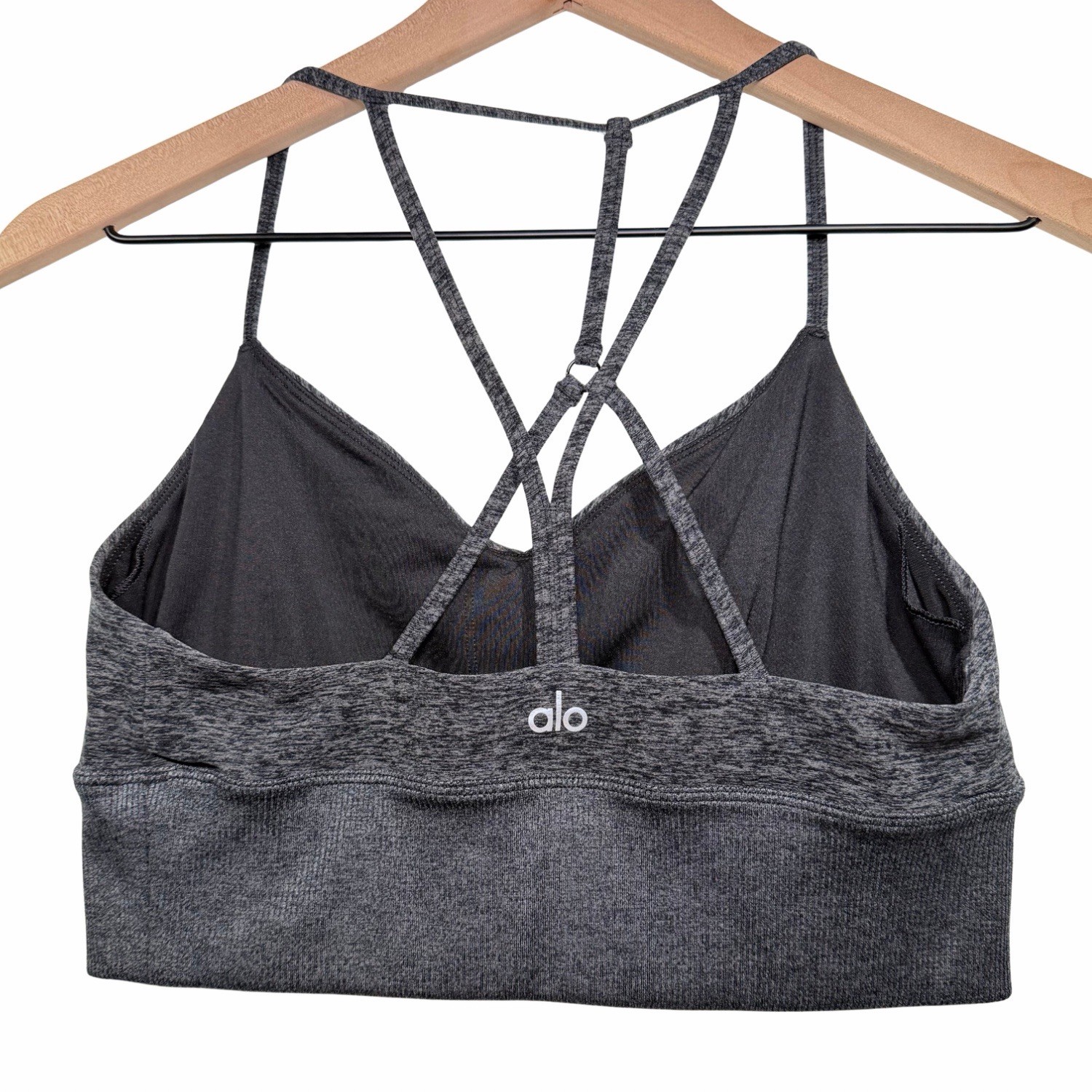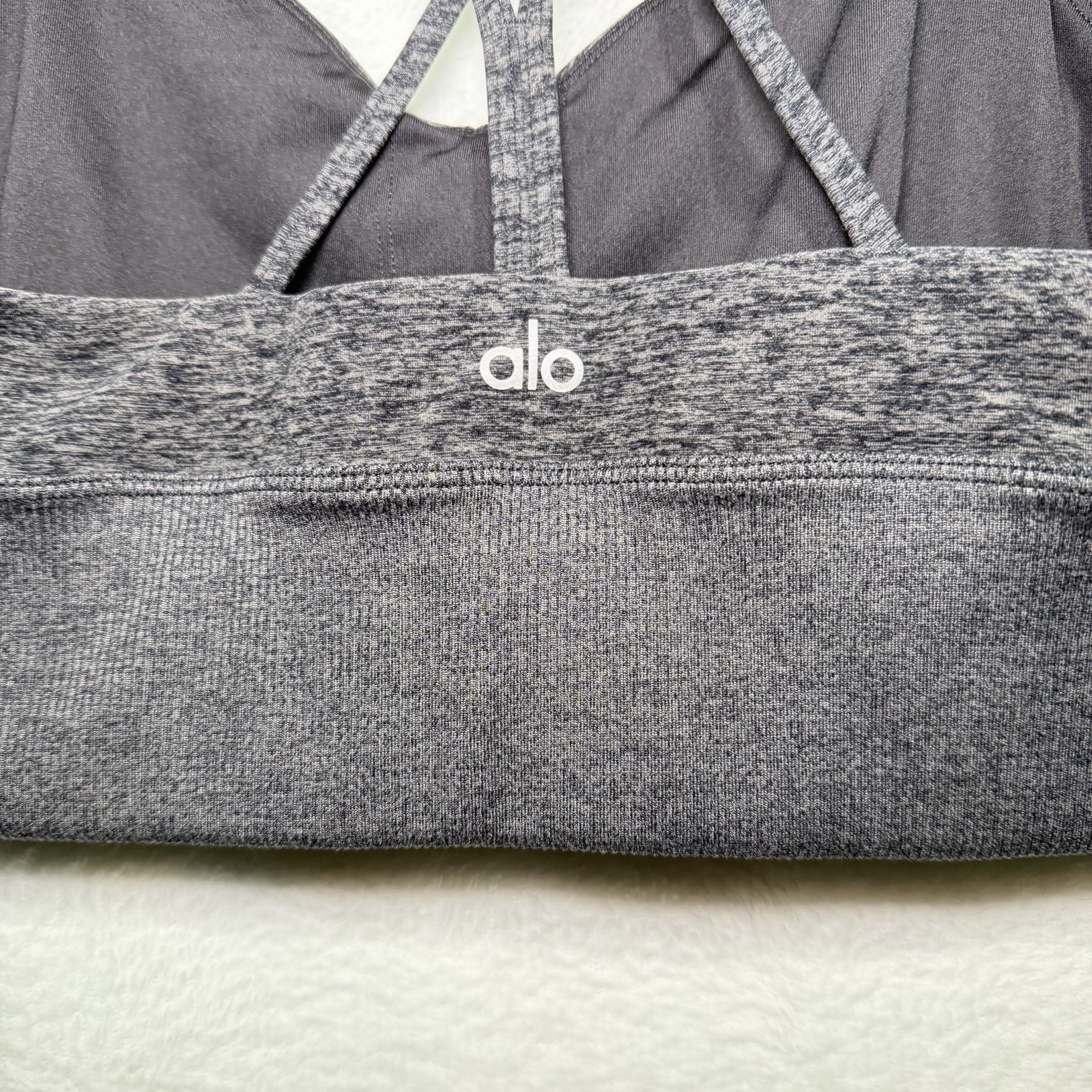 Alo Yoga Alosoft Lush V-Neck Sports Bra Heathered Gray Size L