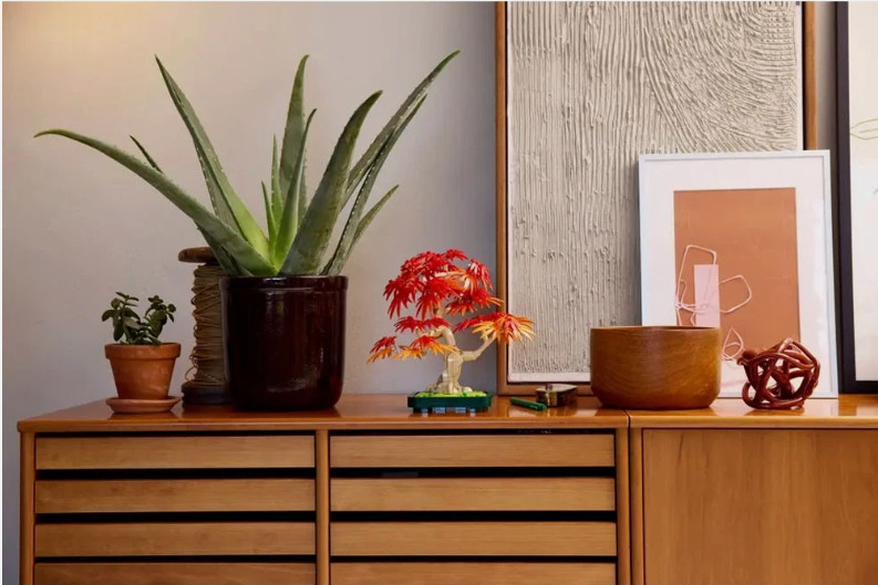 Особенности: Features gorgeous red- and amber-colored leaves, The LEGO tree comes with a dark green pot for easy display, Once complete, use the bonsai tree as nature home decor