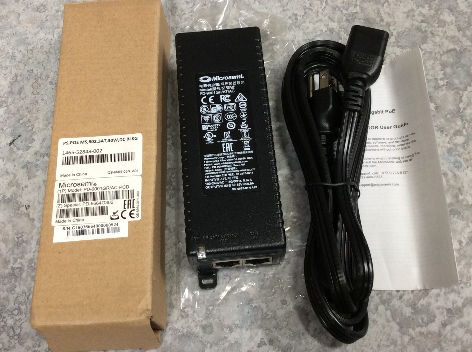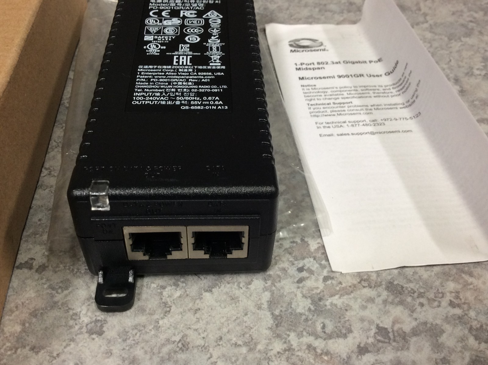 как выглядит Microsemi PD-9001GR/AT/AC- 1-Port 802.3at Gigabit PoE Midspan Switch - New фото