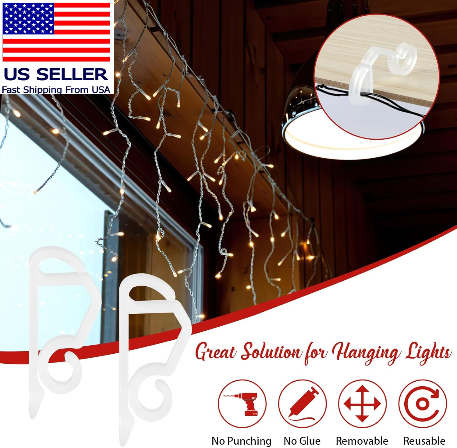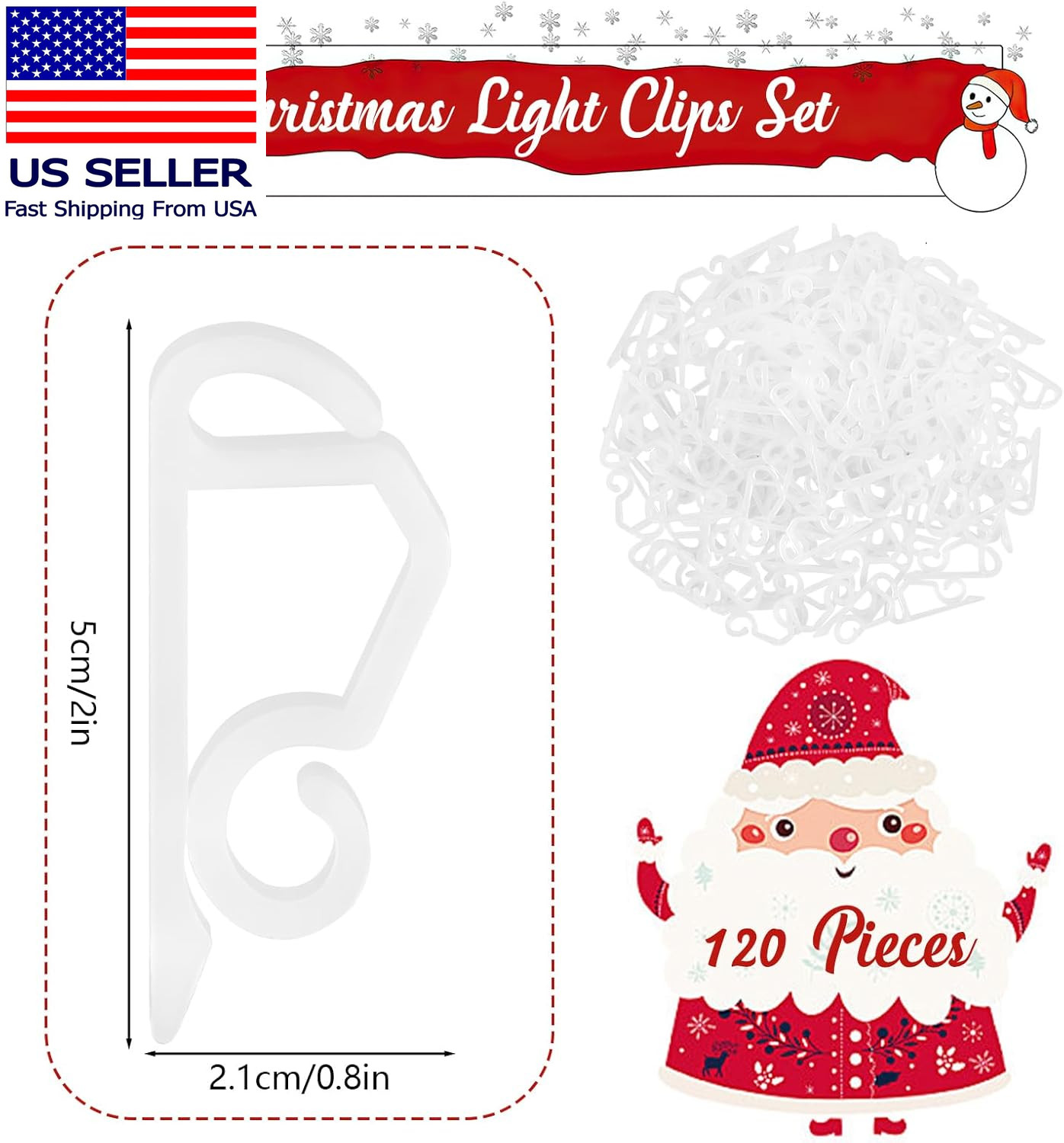 120 Pcs Christmas Light Clips, Weatherproof Gutter Clips Hooks, Mini Holiday Lig