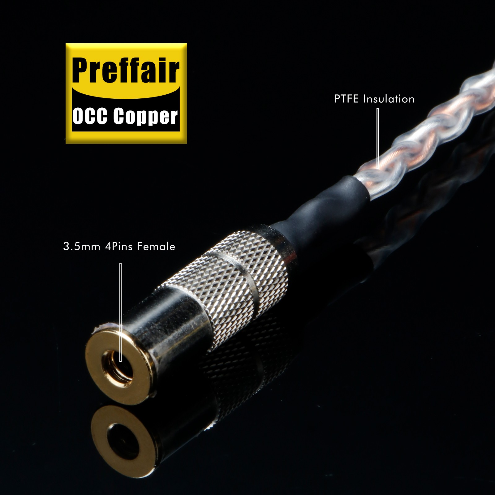 4.4 mm Balanced Male To 3.5 mm Balanced Female Headphone Cable Gold Plated Plug