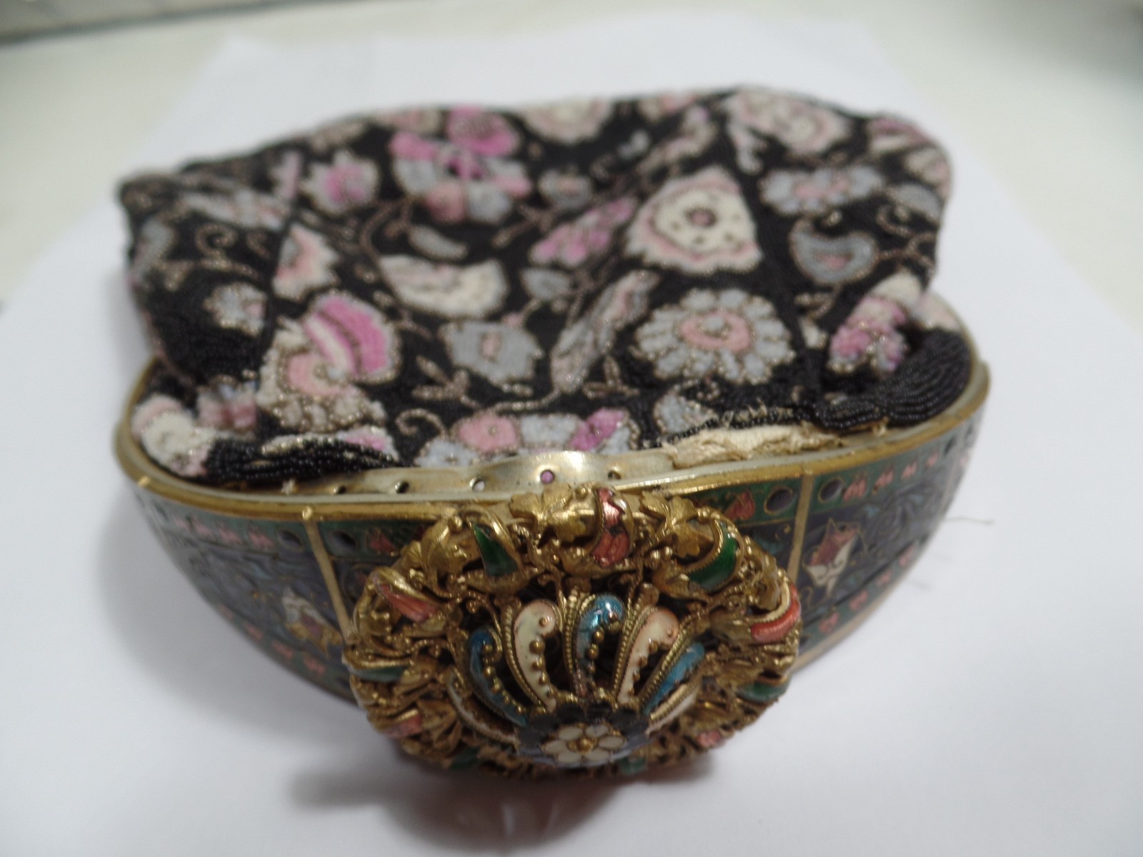 как выглядит Antique Micro Beaded Purse Clutch Flapper Bag Enamel Broach Frame France фото