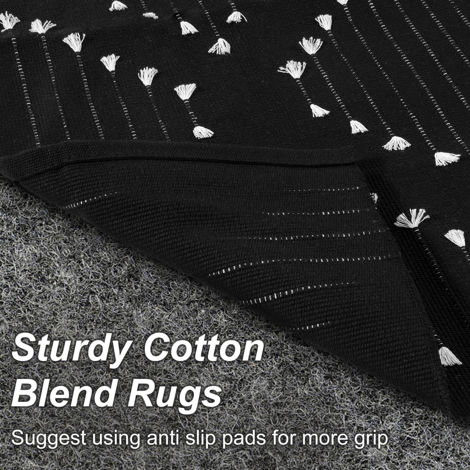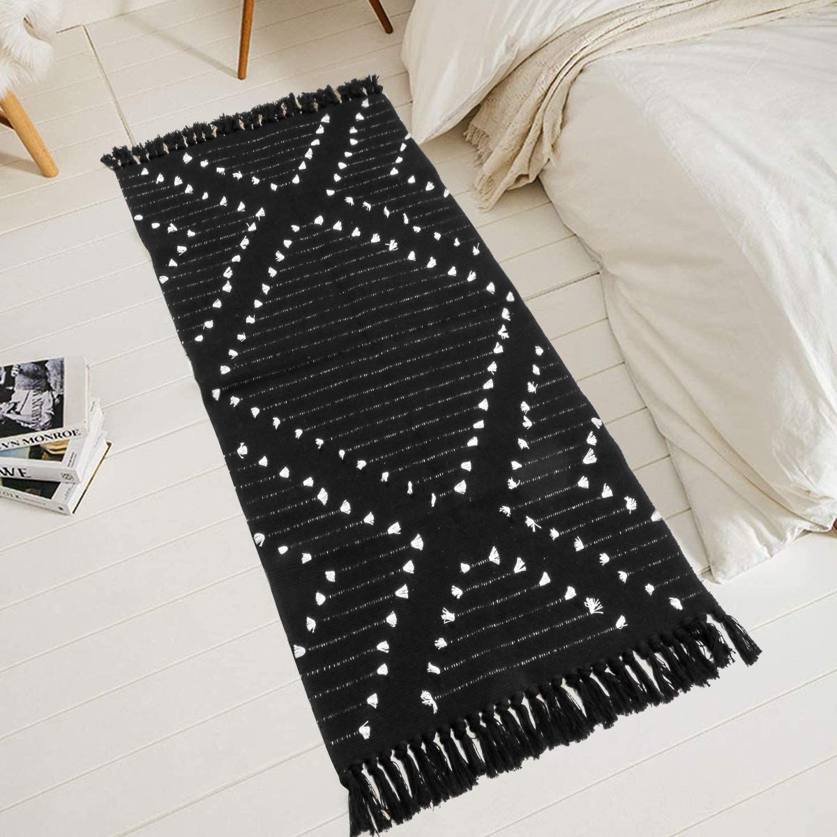 Boho Kitchen Rug 2' x 4.3' Washable Bathroom Runner with Tassel, Moroccan Bla...