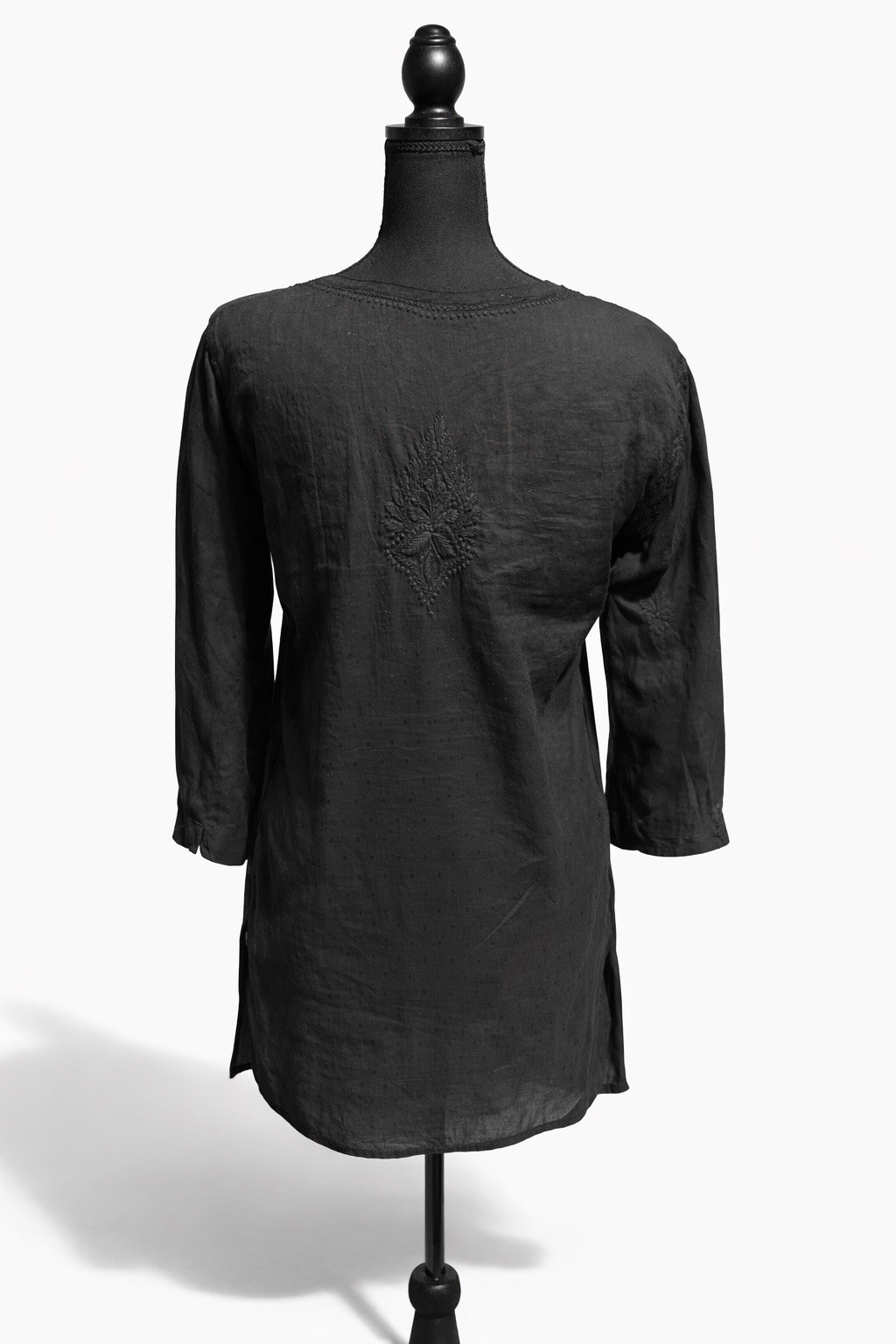 как выглядит Black Cotton Lucknowi Chikankari Hand Embroidered Kurti Small фото