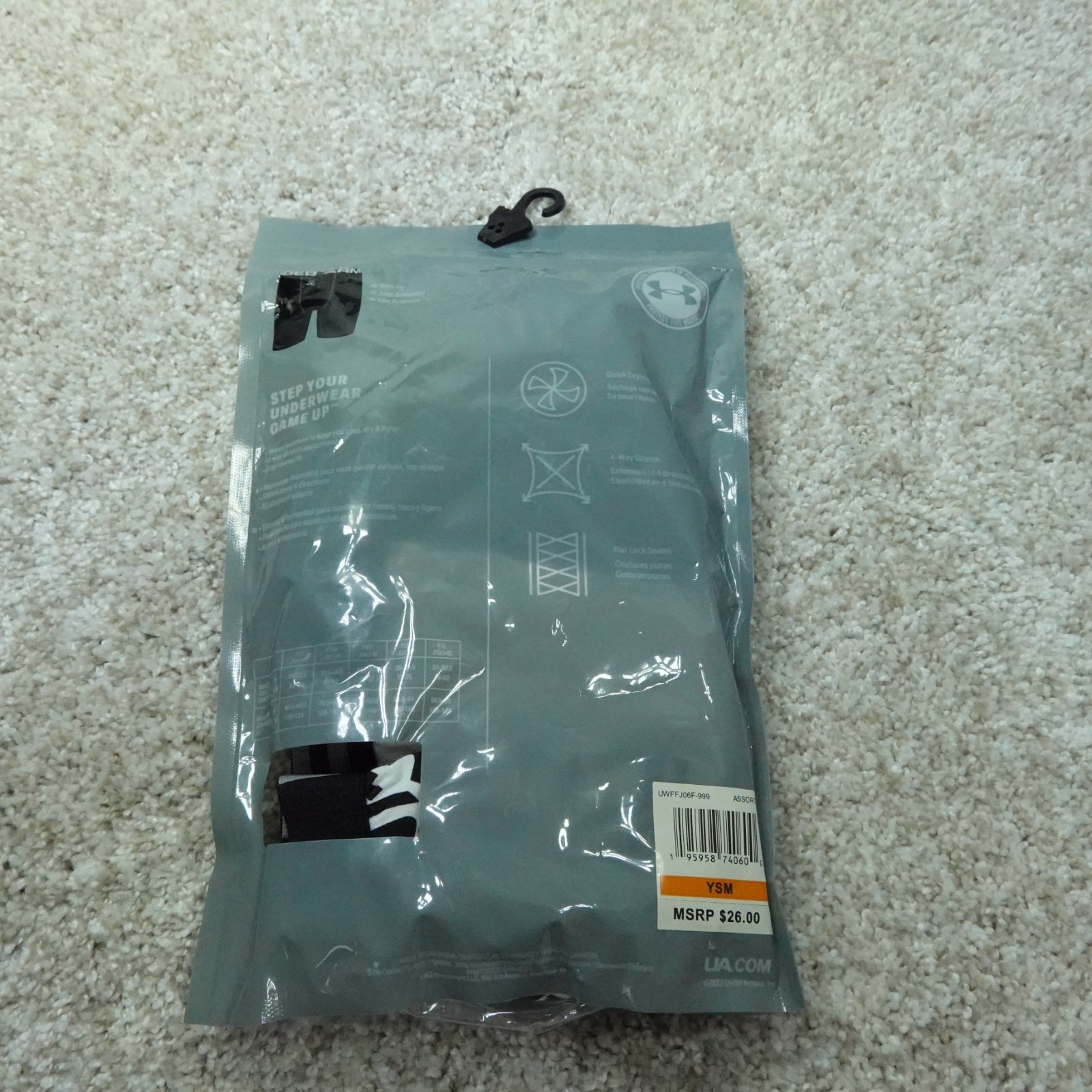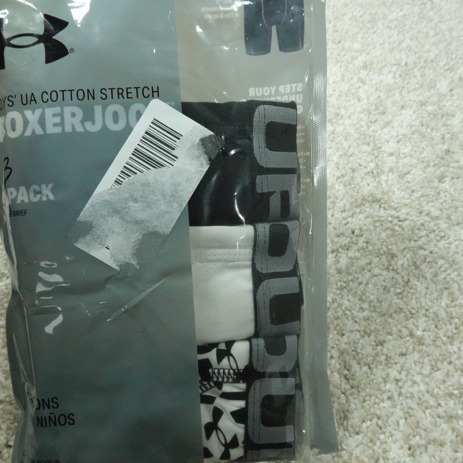 как выглядит Under Armour Underwear Boys Small Youth Black White Boxer Briefs Stretch 3 Pairs фото