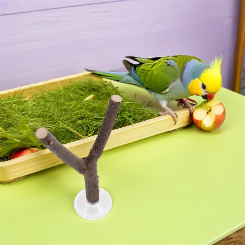 Suction Cup Bird Perch: Natural Wood Branch for Windows Mirrors Bath Shower -