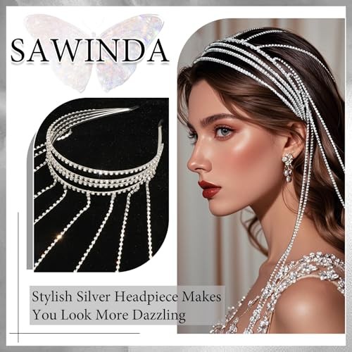 Silver Rhinestone Head Chain Jewelry Crystal Headpiece for Women Brides