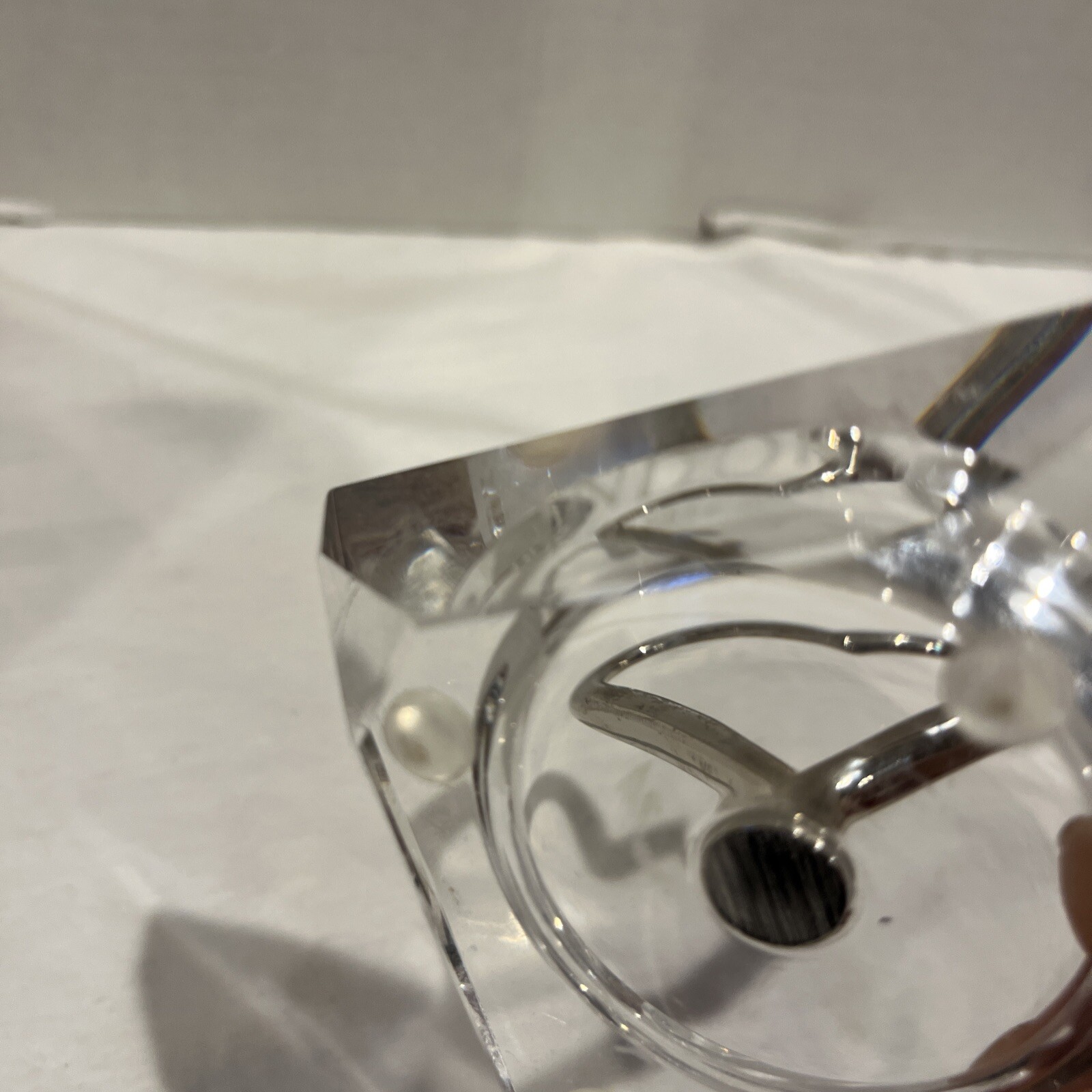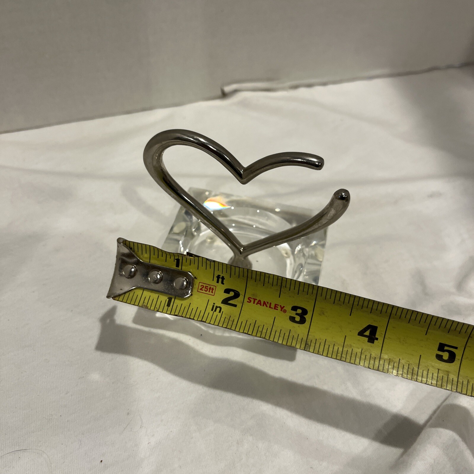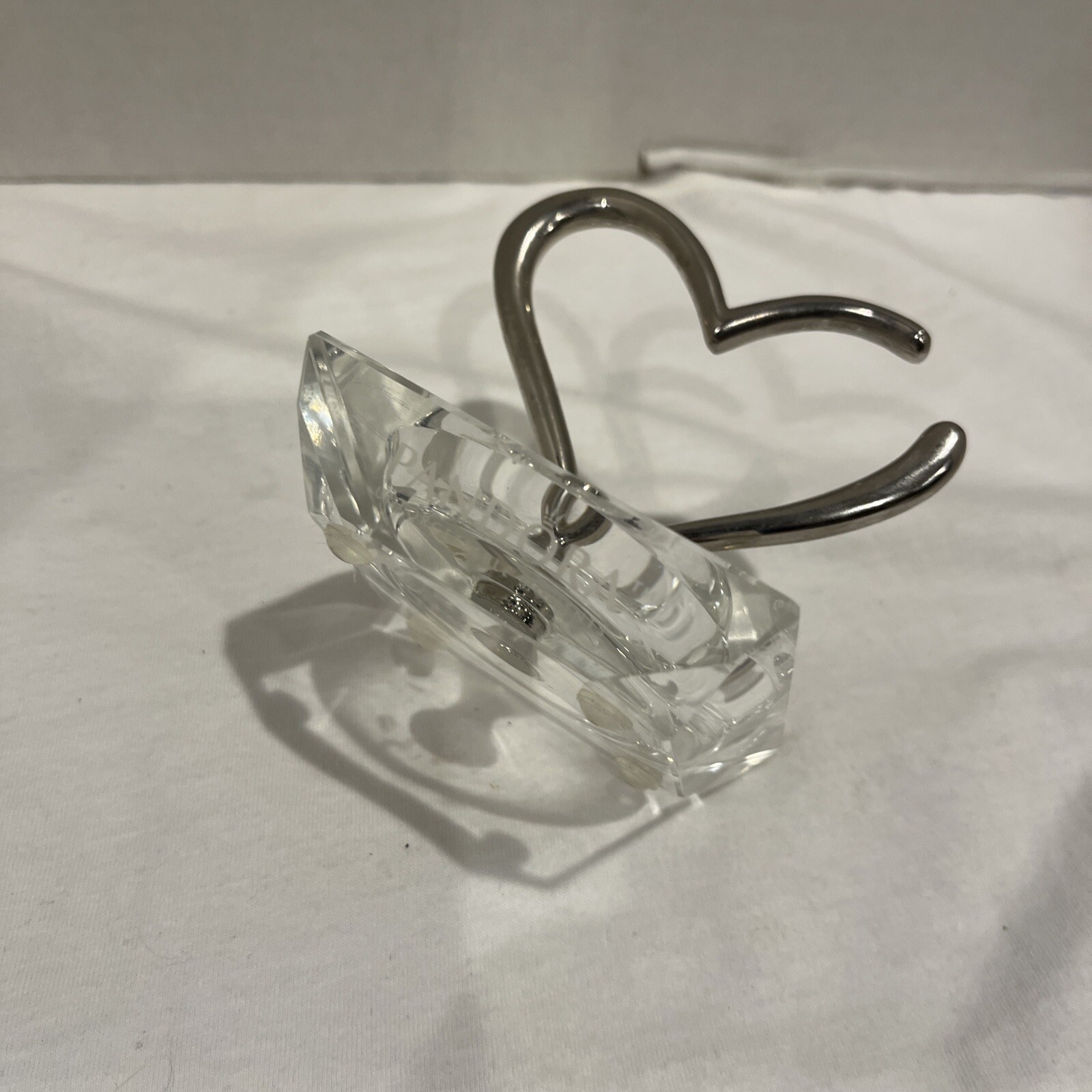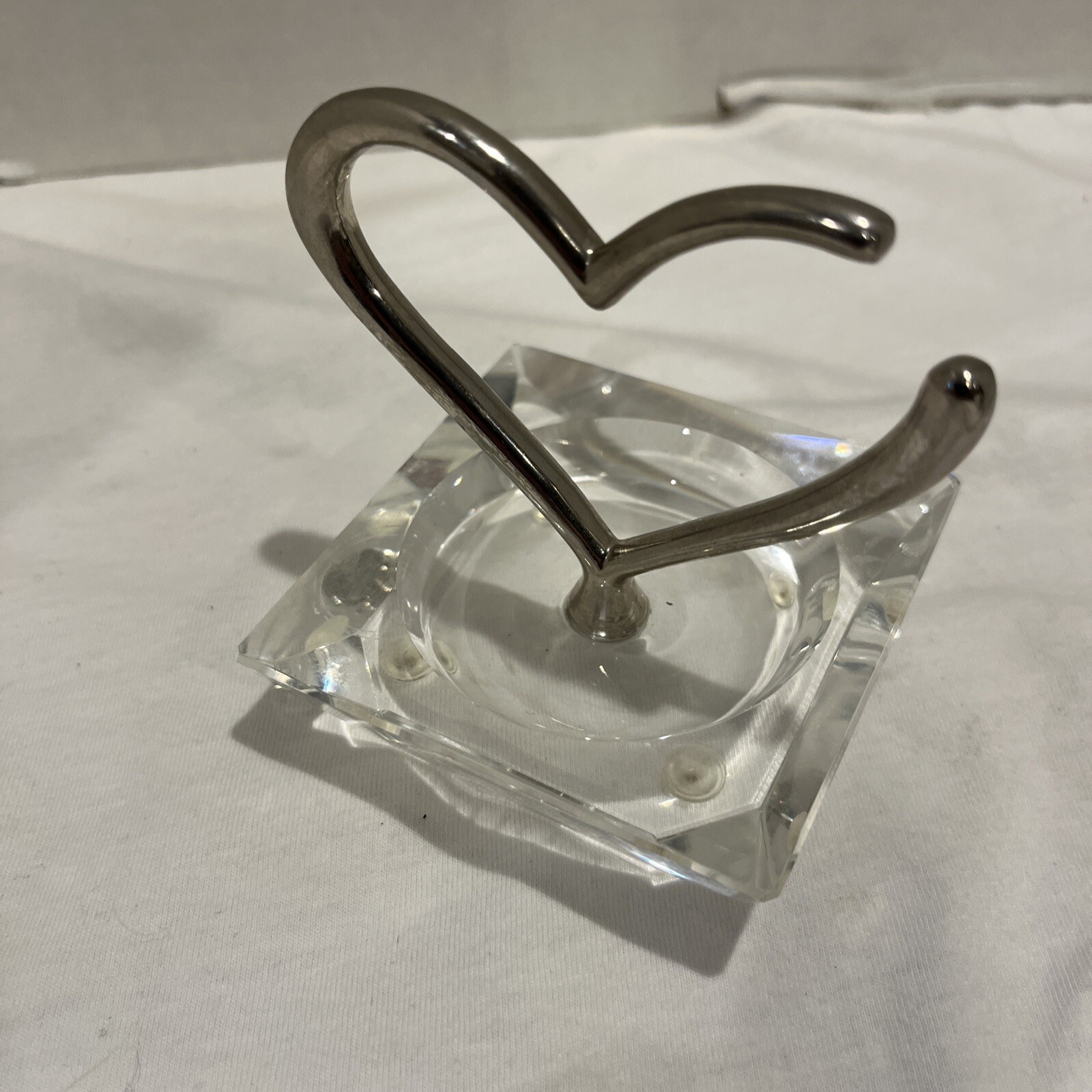 • Pandora Crystal Silver Metal Open Heart Charm Ring Holder Jewelry Stand Etched