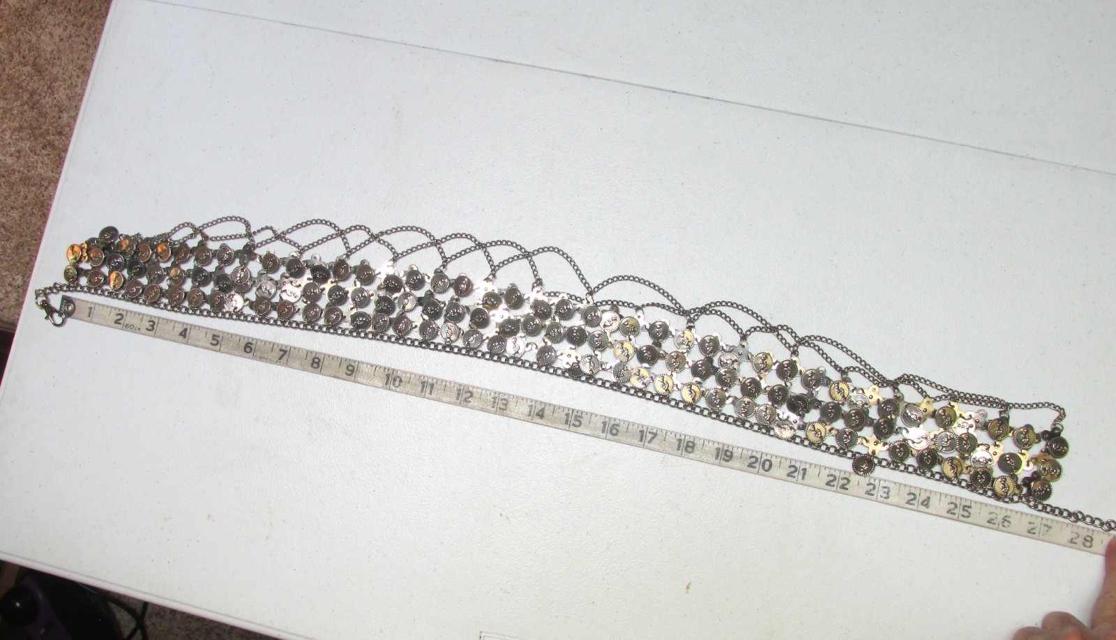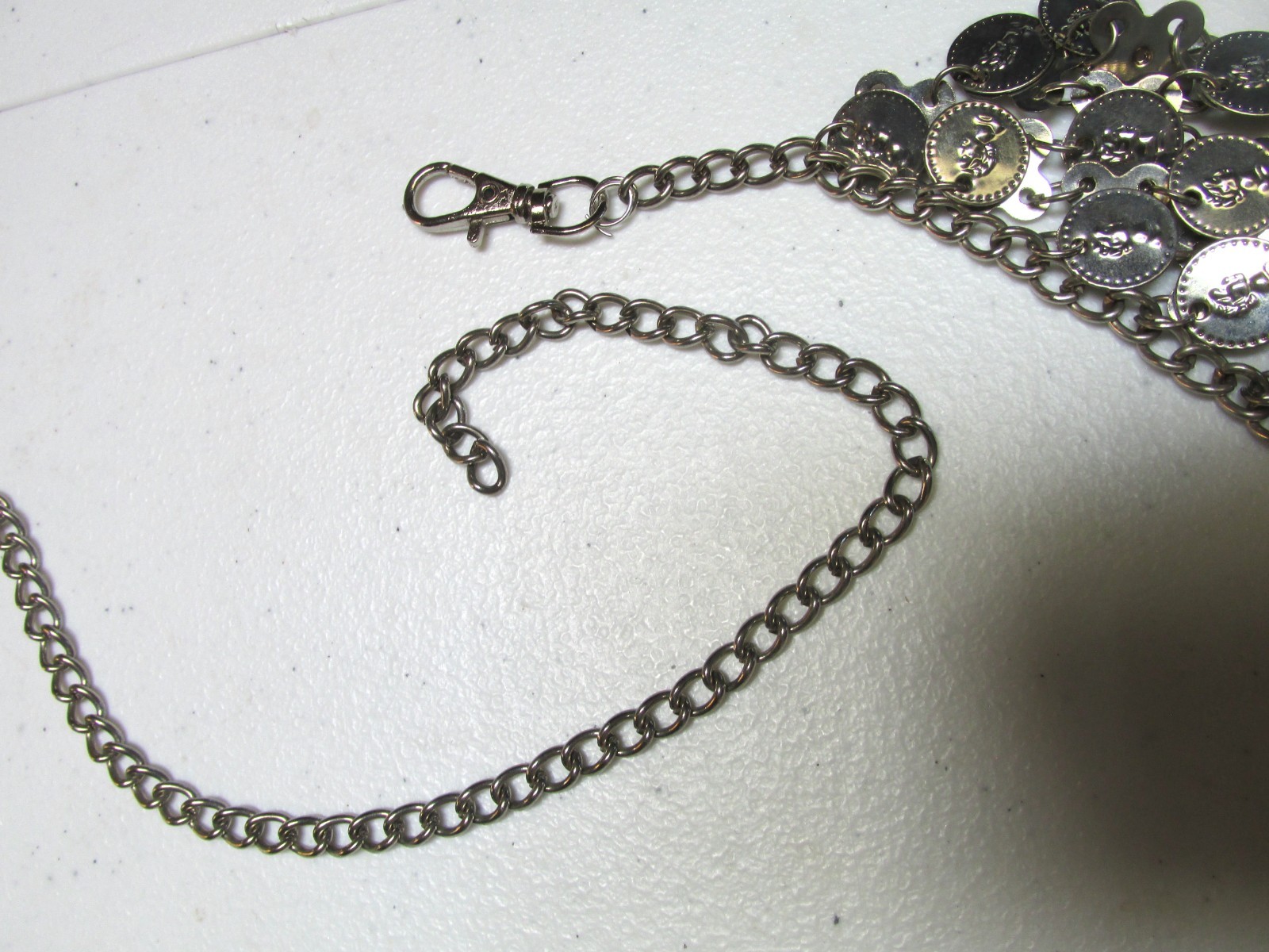 Belly Dance 5 pc Blue Silver Costume- Skirt, Pull-on Top, Hip Scarf, Coin Belt