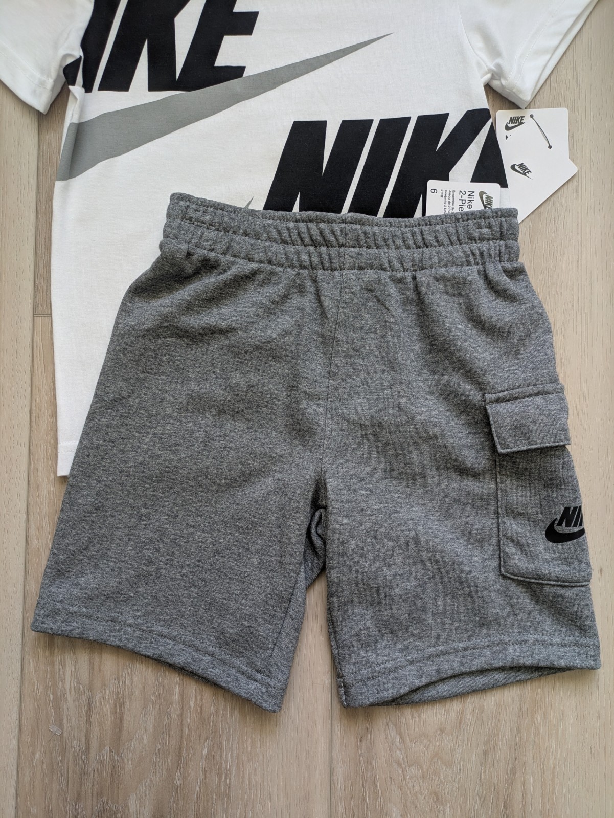Nike Tee Shirt Shorts Set Boys Size 6 NWT White/Grey/Black
