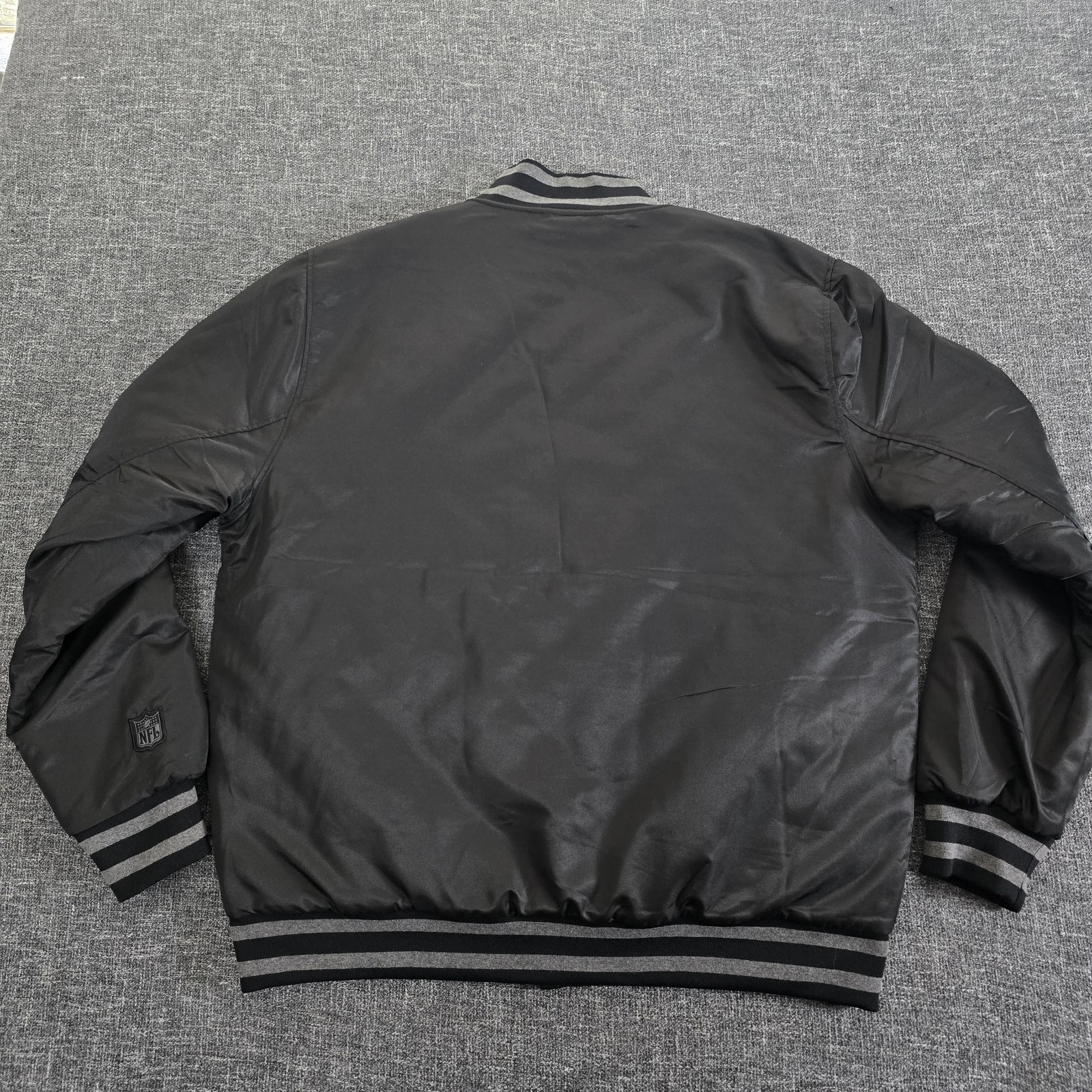 как выглядит NFL Varsity Bomber Jacket Mens Large Black Gray Snap Front NFL Logo фото