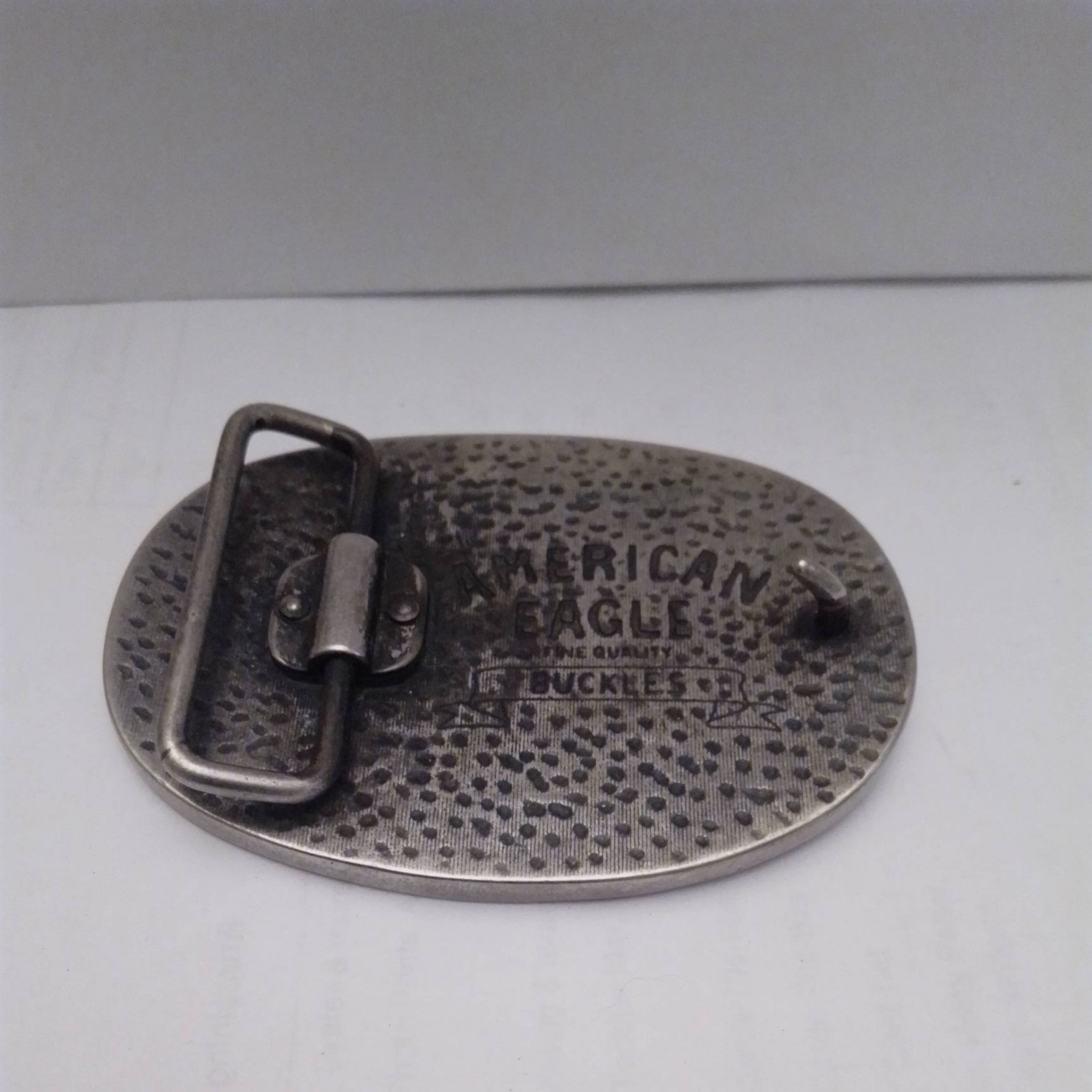 как выглядит VINTAGE AMERICAN EAGLE BELT BUCKLE GET DOWN PEWTER FINISH фото