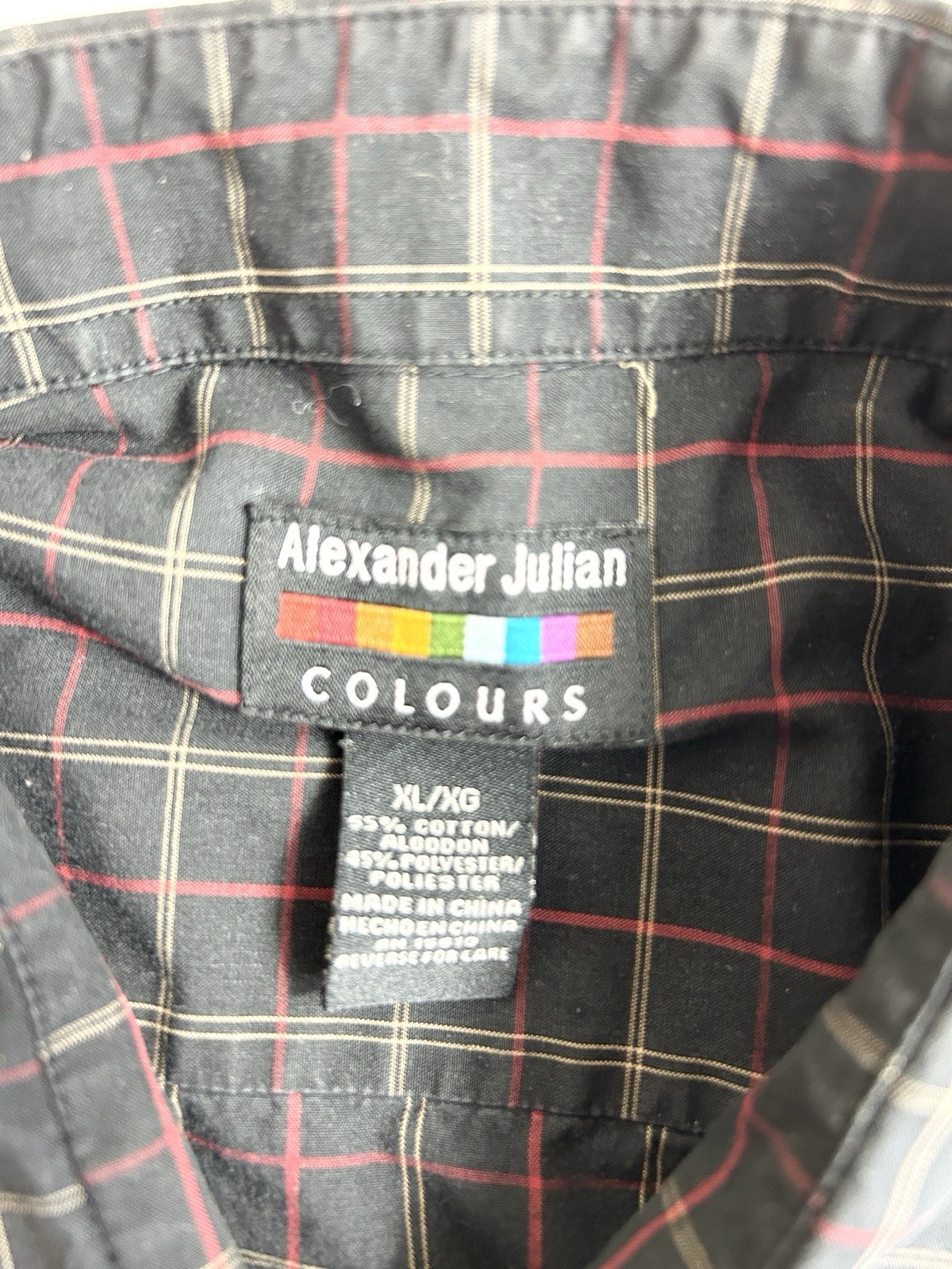 Alexander Julian Shirt Men's XL Black Button Up Vintage Colours Tartan Plaid