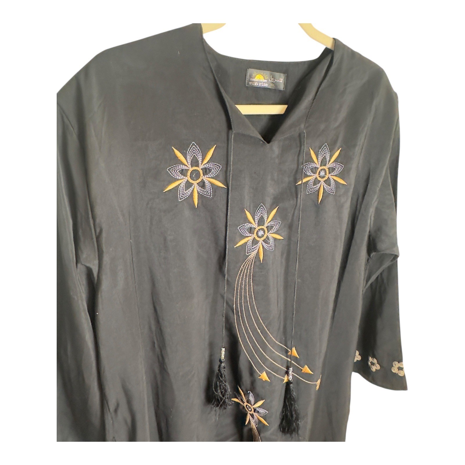 Sunrise Black Embroidered Tassel V-Neck kaftan abaya dress Plus Size XXL