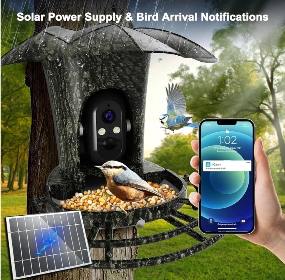 как выглядит AUQRER Smart Bird Feeder with Camera1080P HD Bird Feeder Camera Including 4G SIM фото