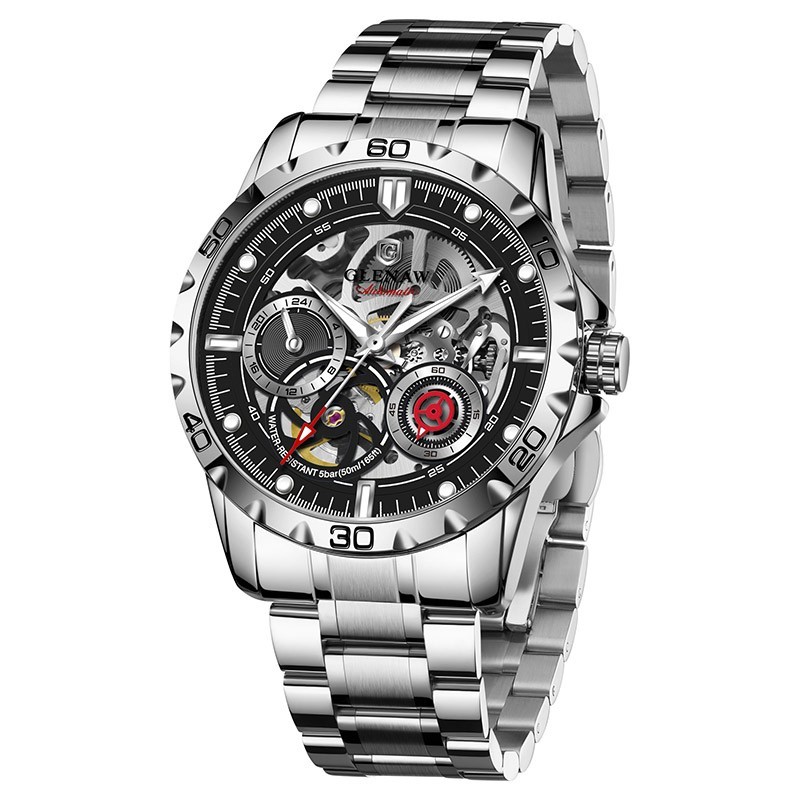 GLENAW men's automatic mechanical watch skeleton luminous pointer 3ATMwaterproof