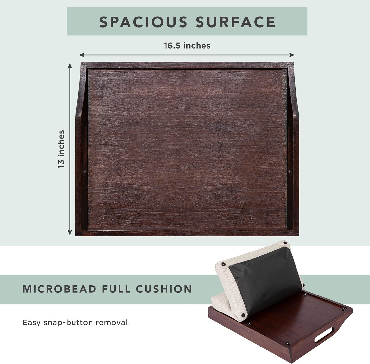 Bamboo Wood Bed Tray, Lap Desk with Detachable Cushion, Serving Tray - Java