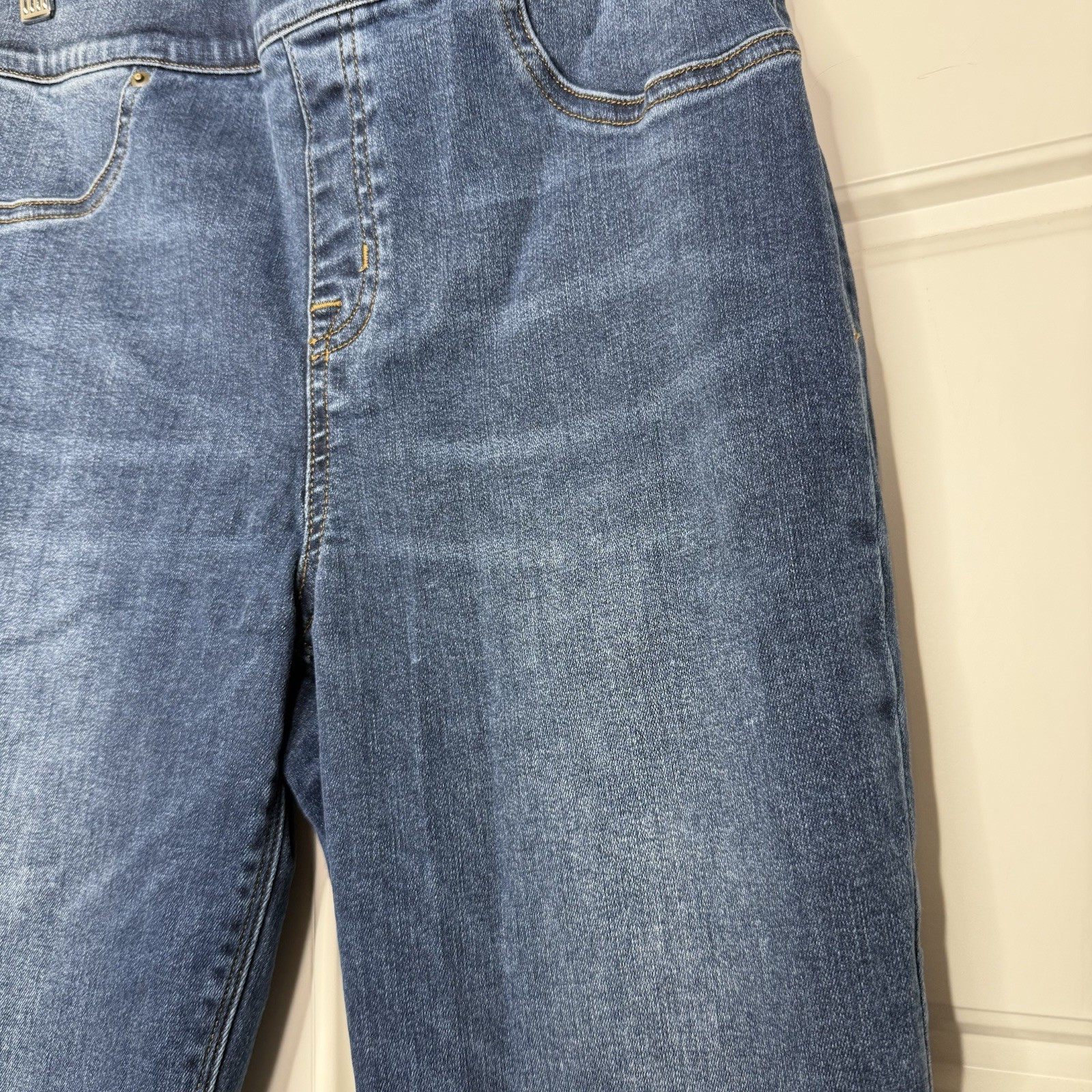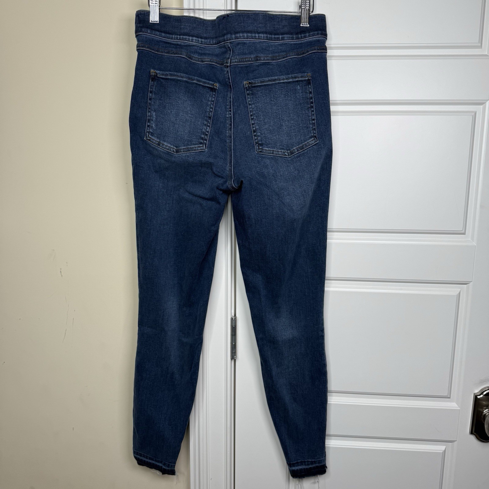 Spanx Jeans Womens L Ankle Skinny Pull on Distressed Raw Hem Stretch Denim Blue