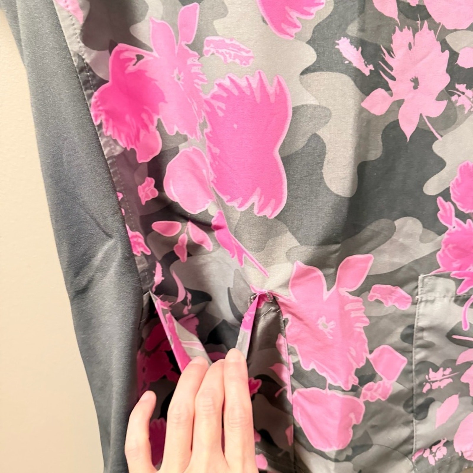 как выглядит Green Town floral scrub top stretchy sides фото