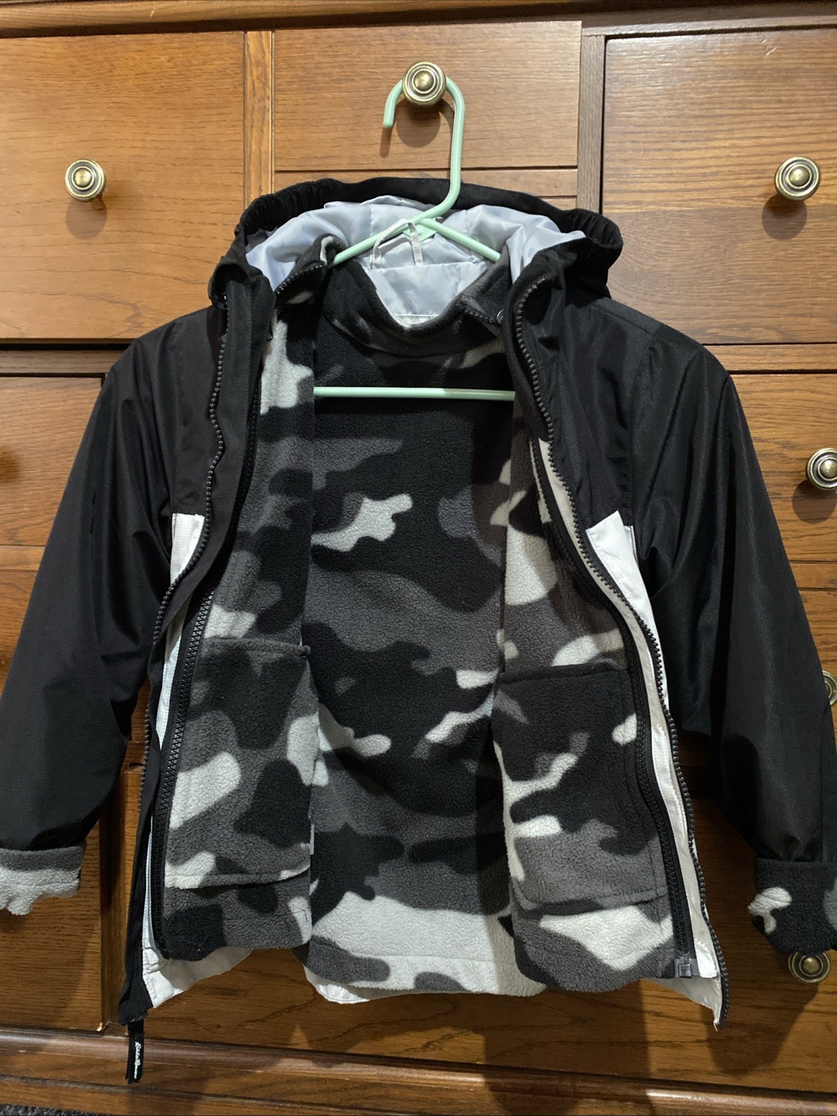 как выглядит Boys EDDIE BAUER 2 In One Jacket Fleece Lined Size XS4/5 Grey/Black/Camo фото