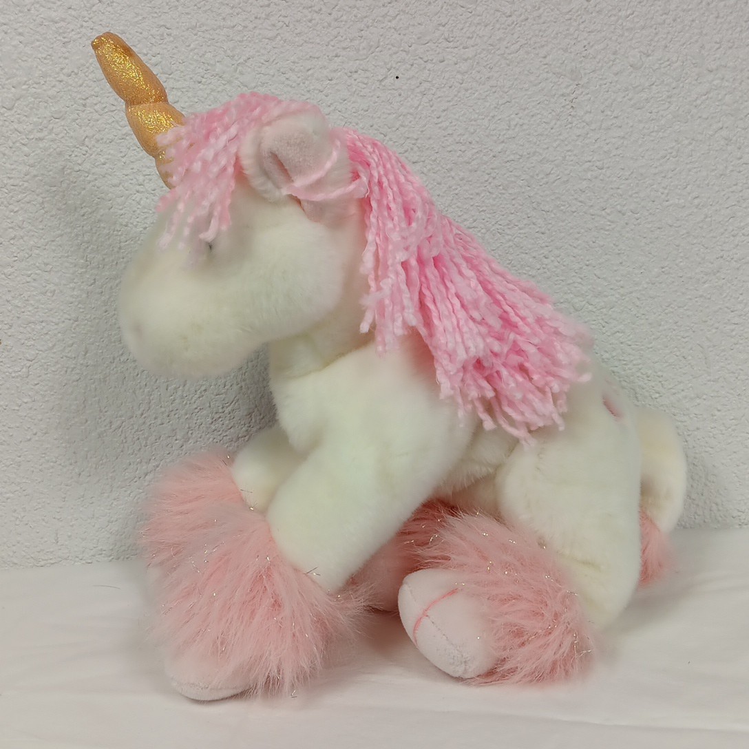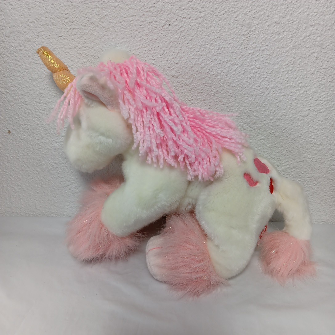 Russ Berrie Aurora Unicorn Cloud White Plush Silky Pink Yarn Mane Tinsel Fur