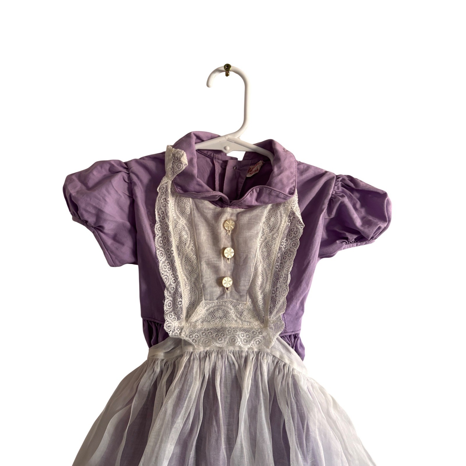 Vintage cottage girl dress in color purple and white with white lace size 2t/3t