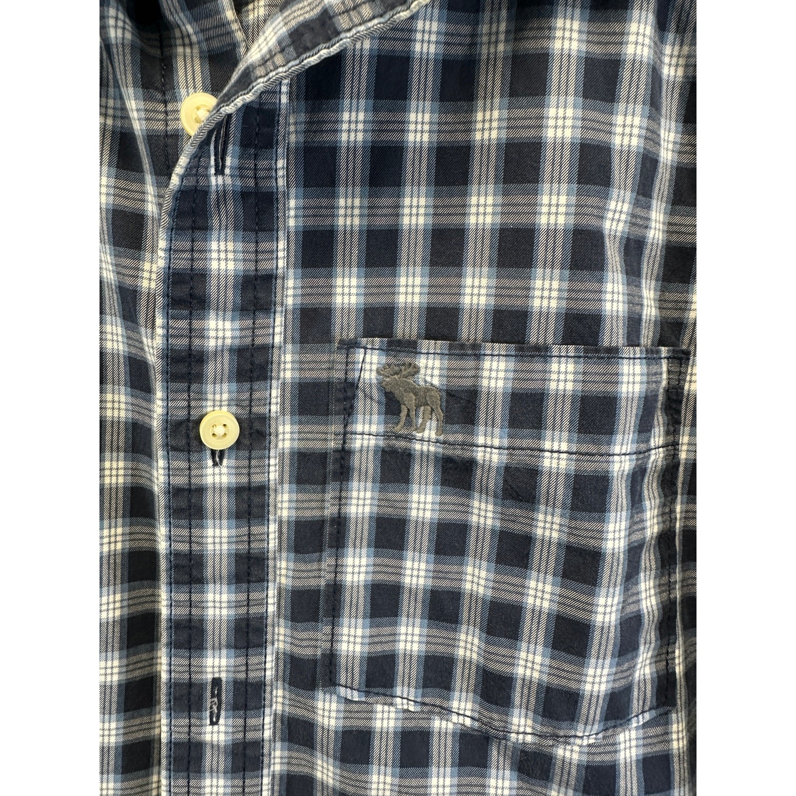 Abercrombie Fitch Muscle Mens Button Up Shirt Blue Charcoal Plaid Small L/S