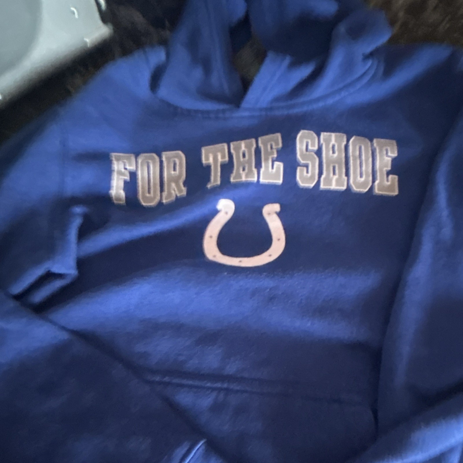 NFL Team Apparel Boys Blue Pullover Hoodie FOR THE SHOE Youth Size L Long Sleeve