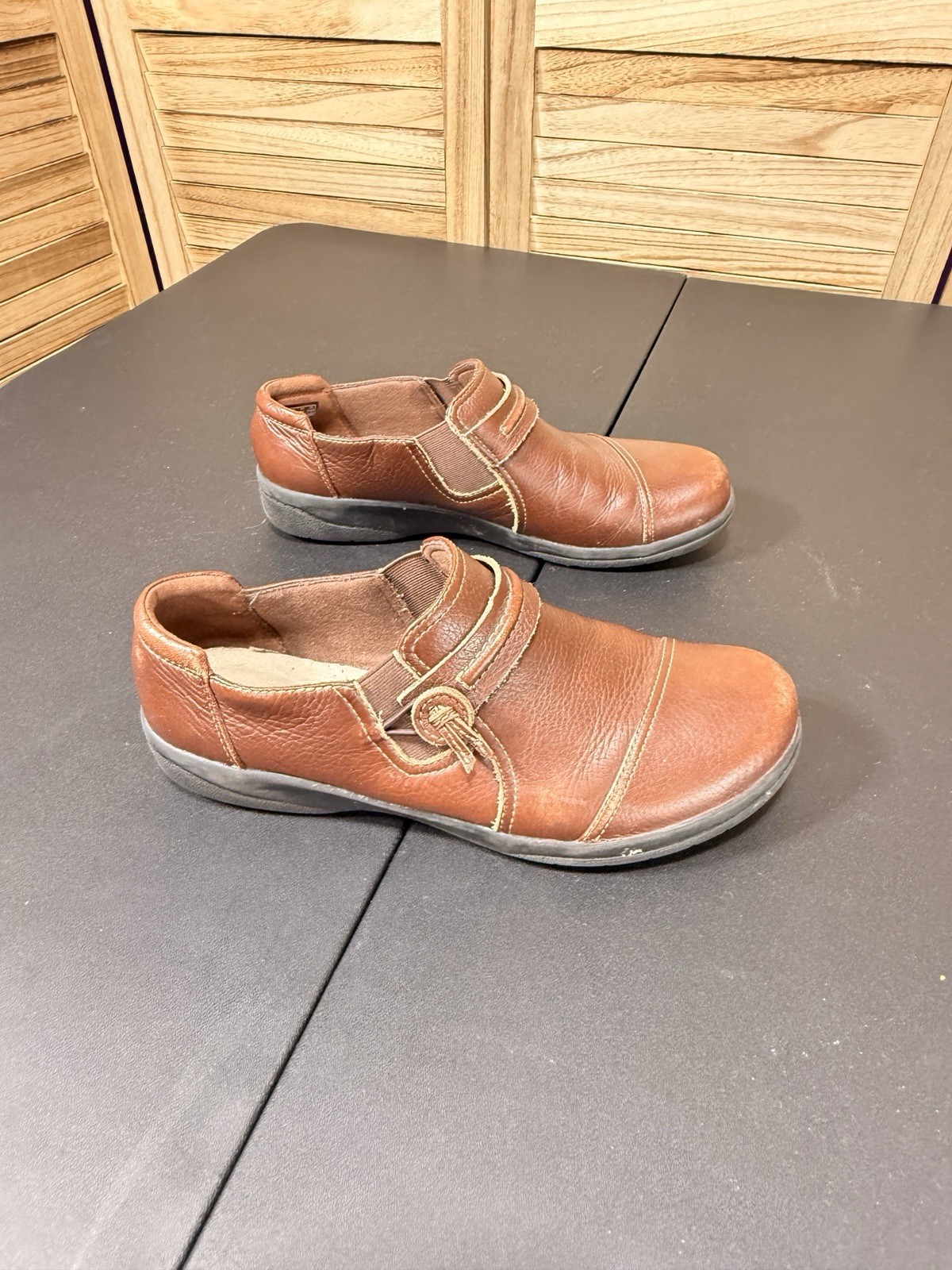 Clarks Slip On Loader Cheyn Madi Brown Tumbled Leather Womens Size 8